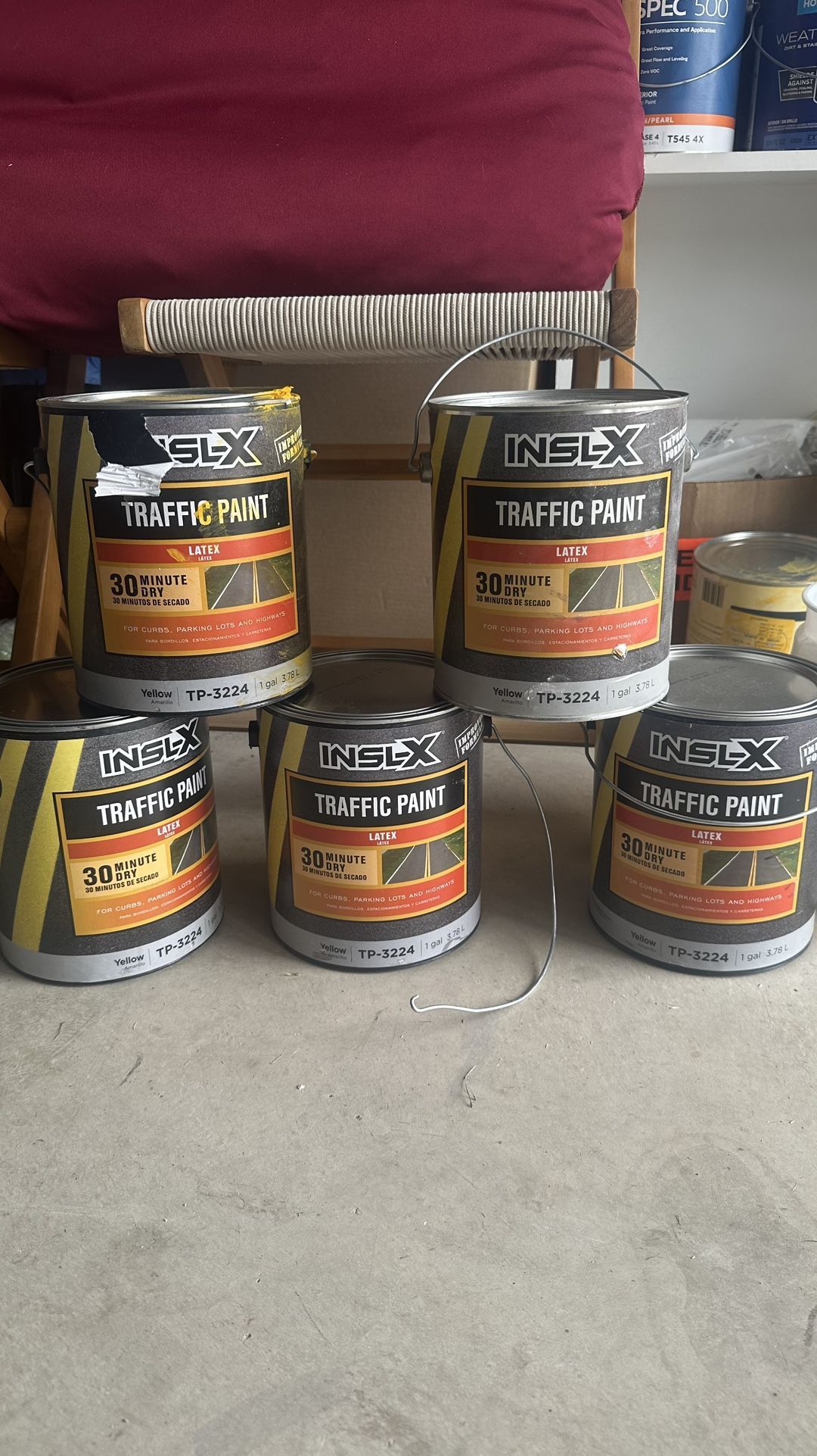 I have 3 one gallon cans of traffic yellow latex paint and I have 2 oil base. Each gallon is $30 cash only