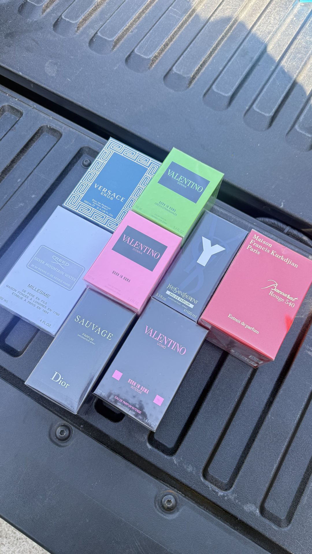 Colognes/perfumes available for ‼️singles/Bulk ‼️ 3 versions of Valentino Creed YSL Bacarrat Versace Eros Dior