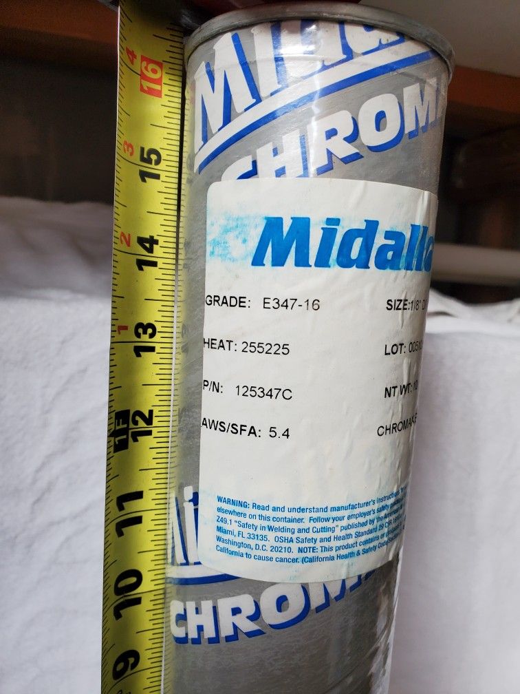 Midalloy E347-16 3/32" or 1/8 10 Lbs asking $80 each can of 10 pounds if interesting please text at 559 seven three one one four 78. Welding Rods