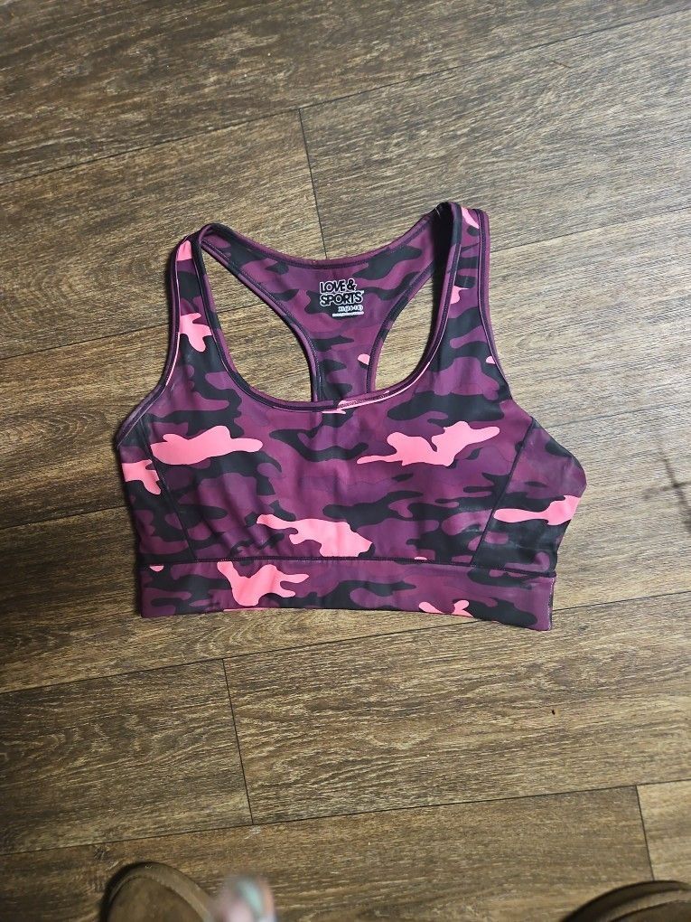 Pink Burgundy & Black Camoflague Sports Bra Plus Size XL 16-18