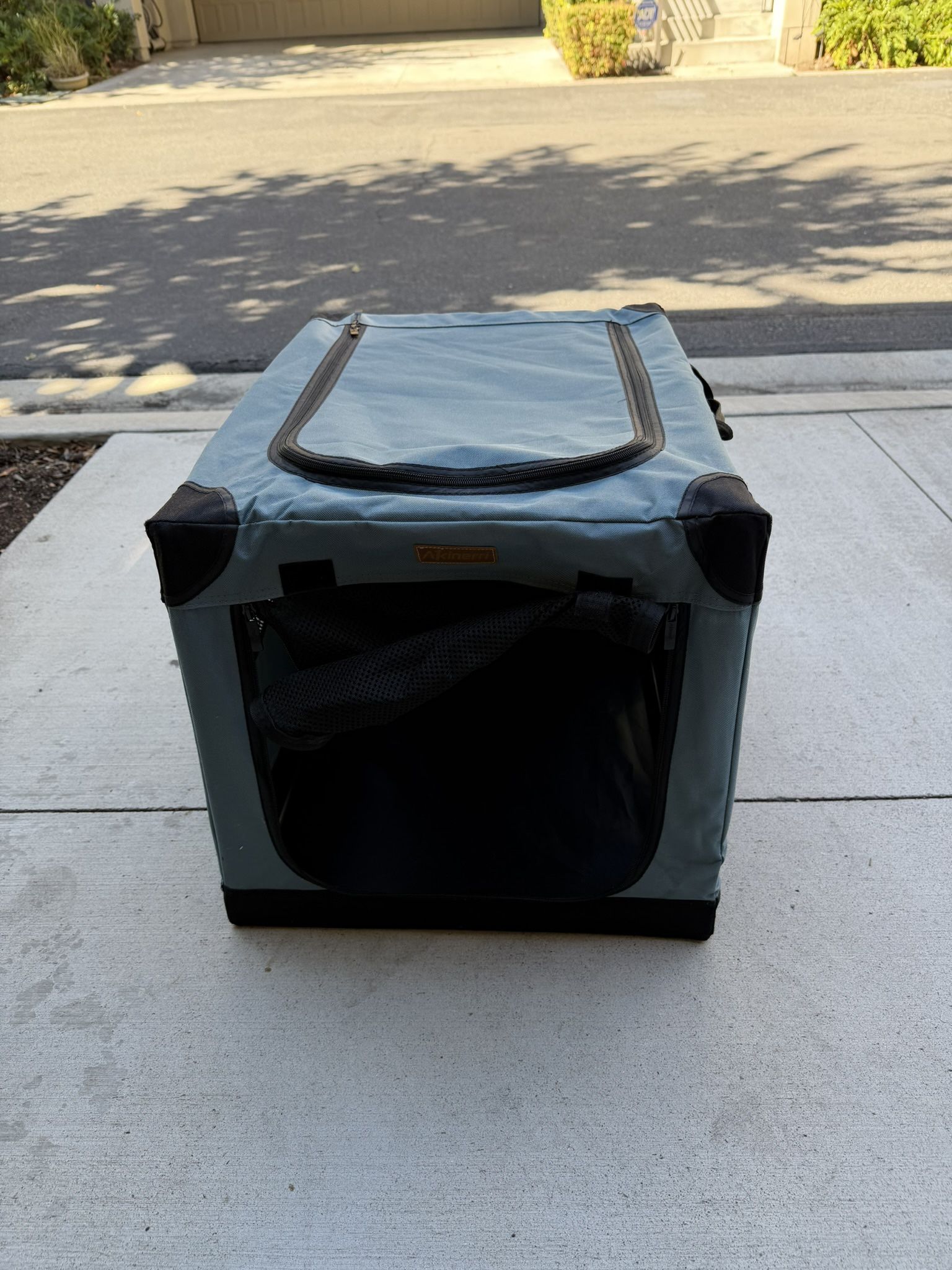 Akinerri Folding Soft Dog Pet Crate Kennel,Soft Collapsible Dog Crate and Kennel with Leak Proof Bottom for Indoor or Travel Use. Product Dimensions 24"L x 18"W x 17"H Material Oxford Fabric + Mesh Special Feature Airy, Collapsible, Comfortable, Durable, Leak Proof, Lockable, Portable, Secure, Washable Size 26-Inch Original price: $45 Hartley used. Pick up only