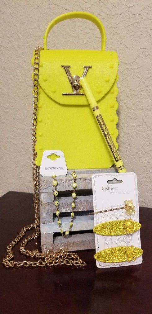 ALL NEW SET IS $45 CROSSBODY BAG HAIR ACCESSORIES NEON ANKLE BRACELET EYELINER