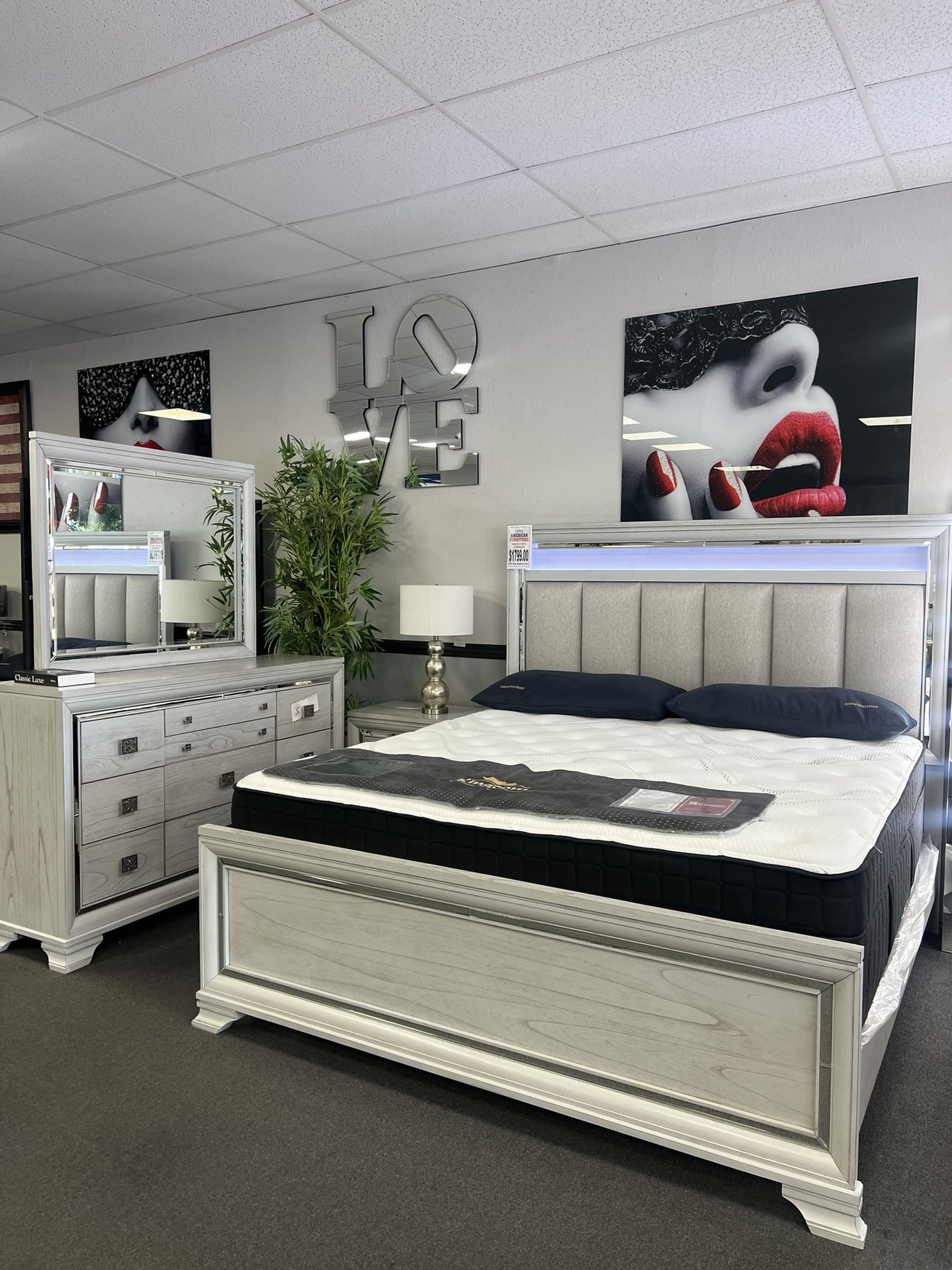 4PC Light Gray King Bedroom Set w/ LED Lights