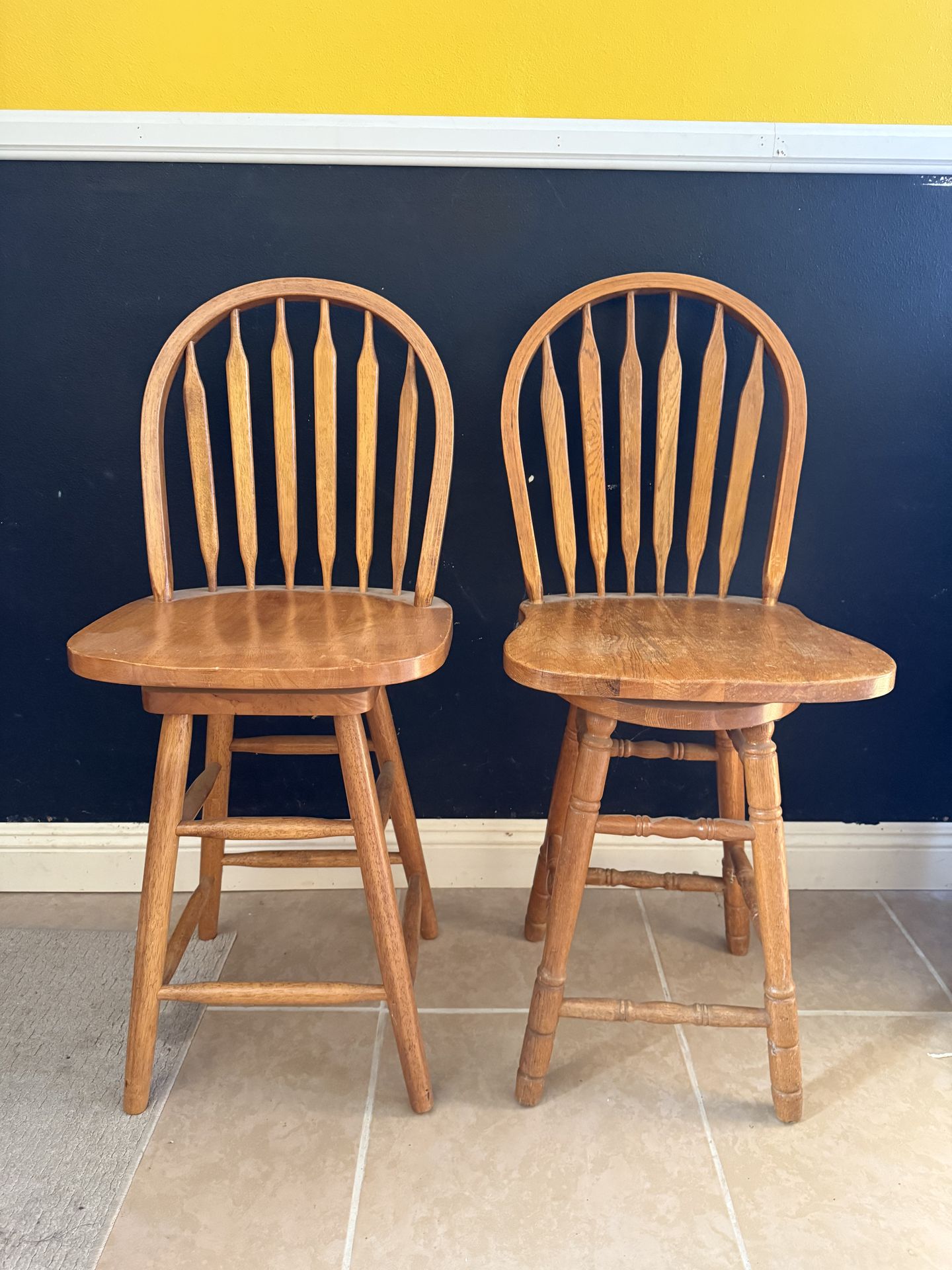 Two Wooden rotating barstools