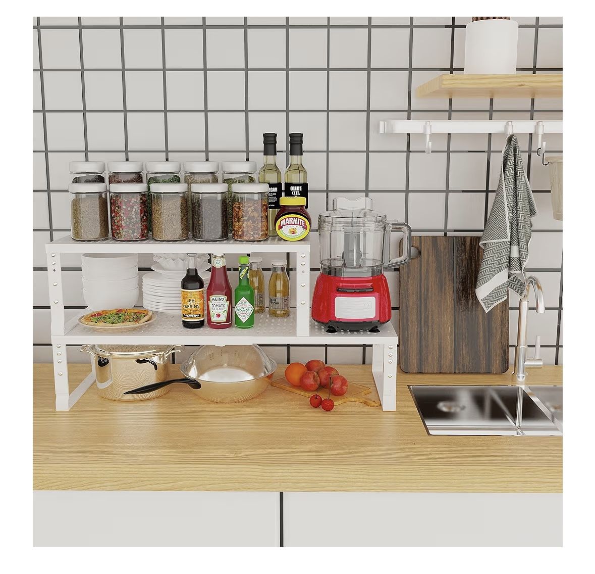 Expandable Adjustable Stackable Kitchen Organizer, Spice Rack,Metal Pantry Storage Shelves Racks,Counter Shelf for Cabinets, Countertop, Cupboard (1 Pack/Large/White) Completely new (see pictures ) 📦accept offers 📍pickup only