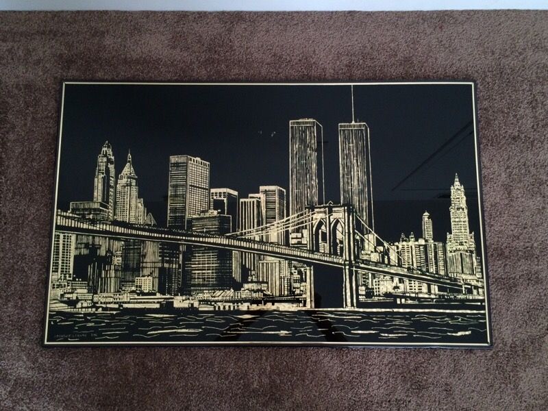 Image of New York's Twin Towers Old picture frame of a historical monument but good condition.