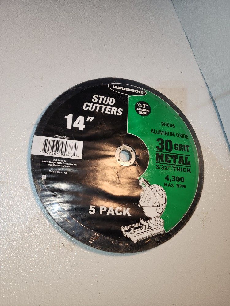 Lot of 5 Warrior 14" Aluminum Oxide Cut-Off Wheels 24 Grit 1" Arbor 3/32" Thick
