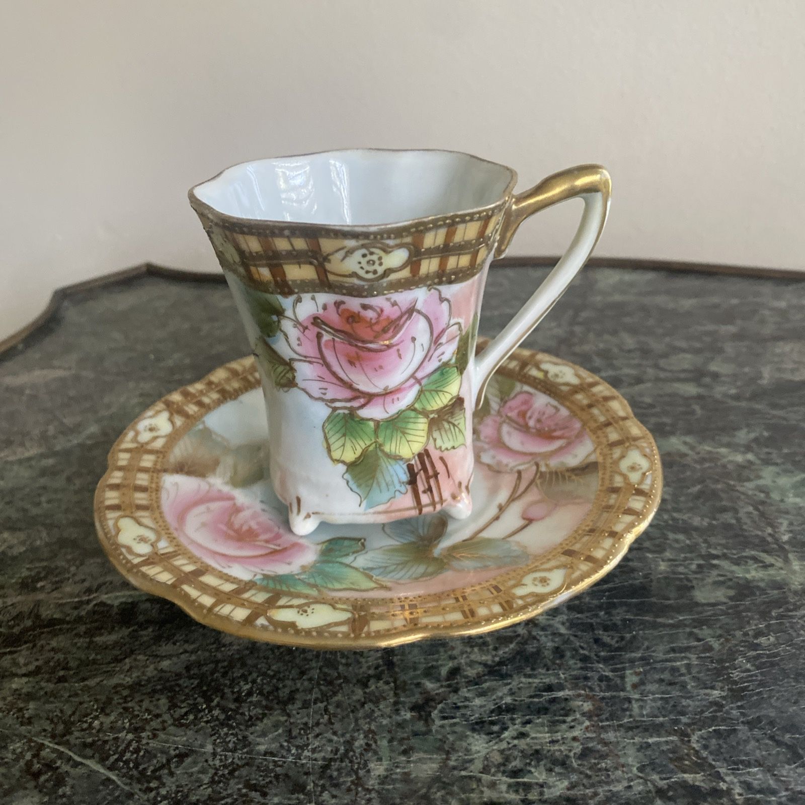 Nippon Hand Painted Teacup and Saucer Floral Delicate Bone China