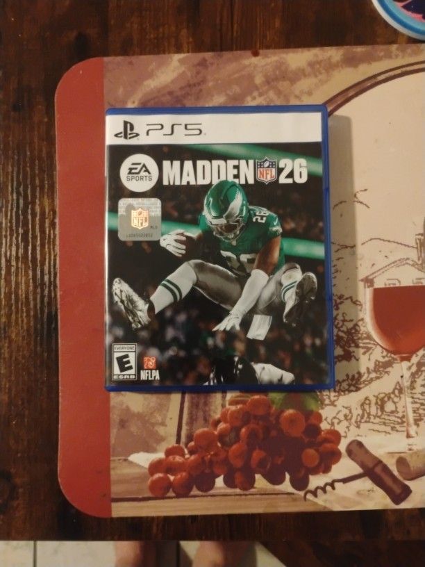 MADDEN 26 PS5 . No scratches or anything on disk . Case and disk in New condition This game is still selling for over $60 pre-owned at Game Stop.