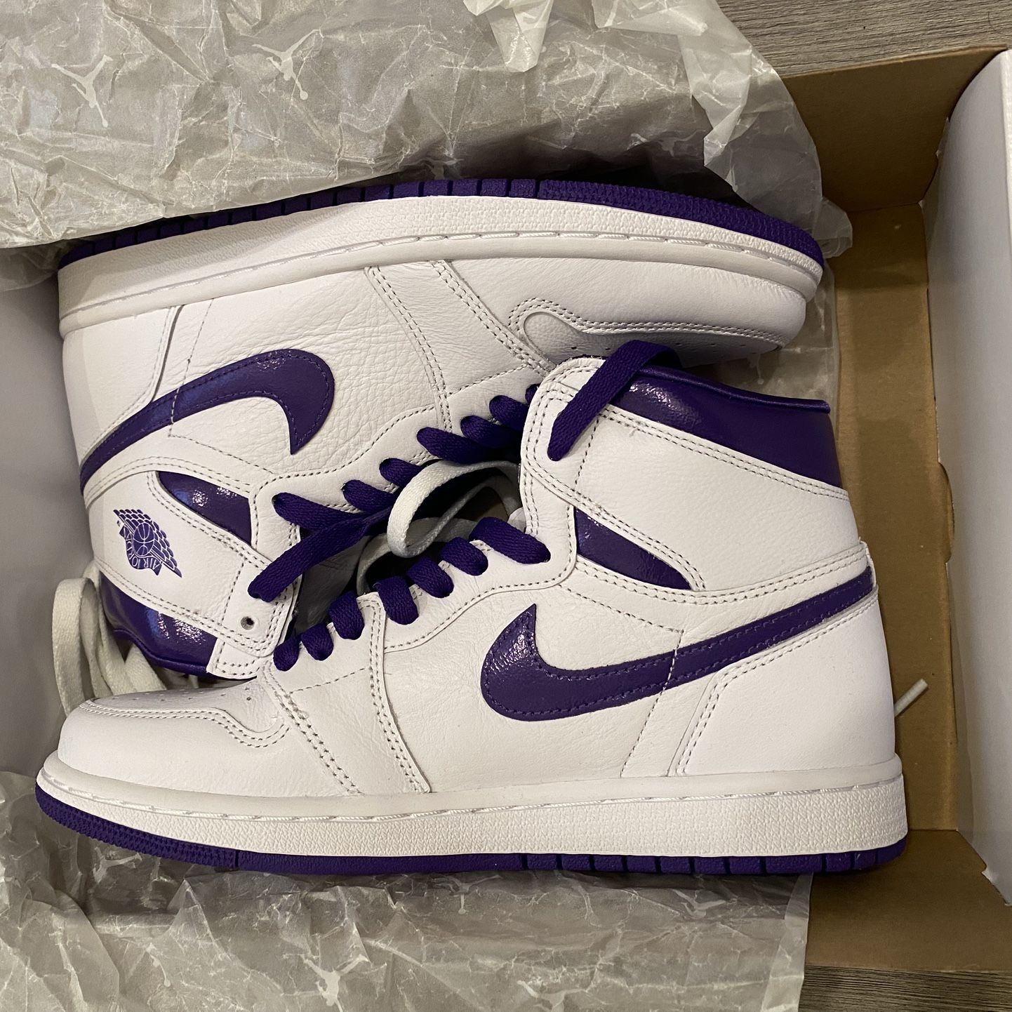Nike Jordan Shoes Size 7 Women Jordan 1 High Og Purple and White New Still Have Original Box