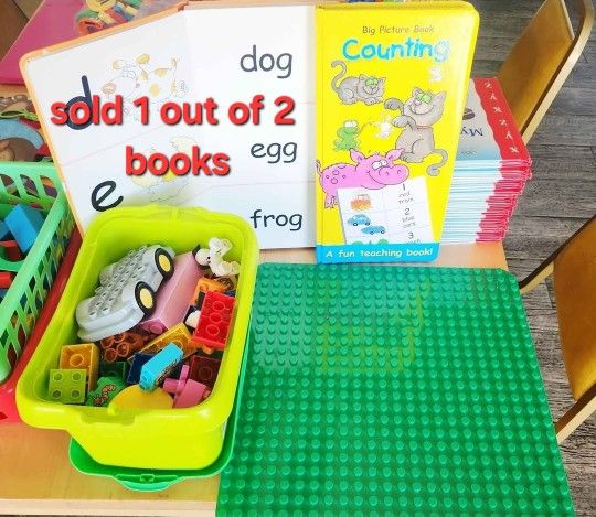 Duplo blocks with storage box/ lid and Duplo board