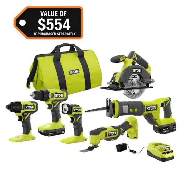 ONE+ 18V Cordless 6-Tool Combo Kit with 1.5 Ah Battery, 4.0 Ah Battery, and Charger