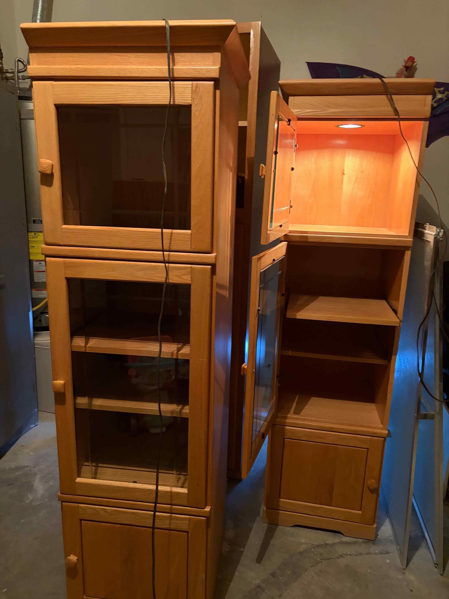 Beautiful solid wood curio cabinet in good condition. Tall and narrow, so it doesn’t take up much floor space. Features a glass door and multiple shelves—perfect for displaying collectibles, dishes, glassware, or décor. Sturdy and well-made. Minor wear from normal use