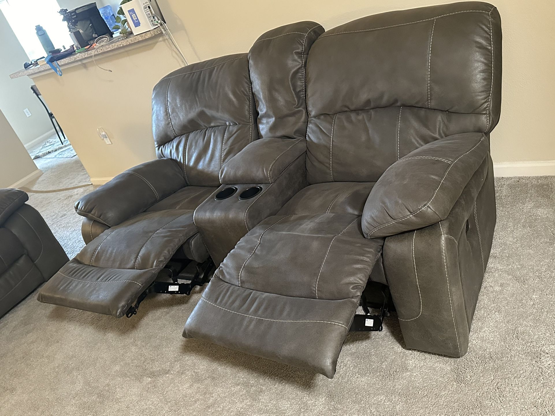 We are selling our couches! One has a small burn hole(shown in picture), other than that they are in great condition! They are all electric and all recline ! Have multiple usb ports for charging things! Love set has middle console for storage! We are selling for $800. We bought them for almost $3k,3 years ago! Pick up only! Located in Owasso, Oklahoma! Message me!