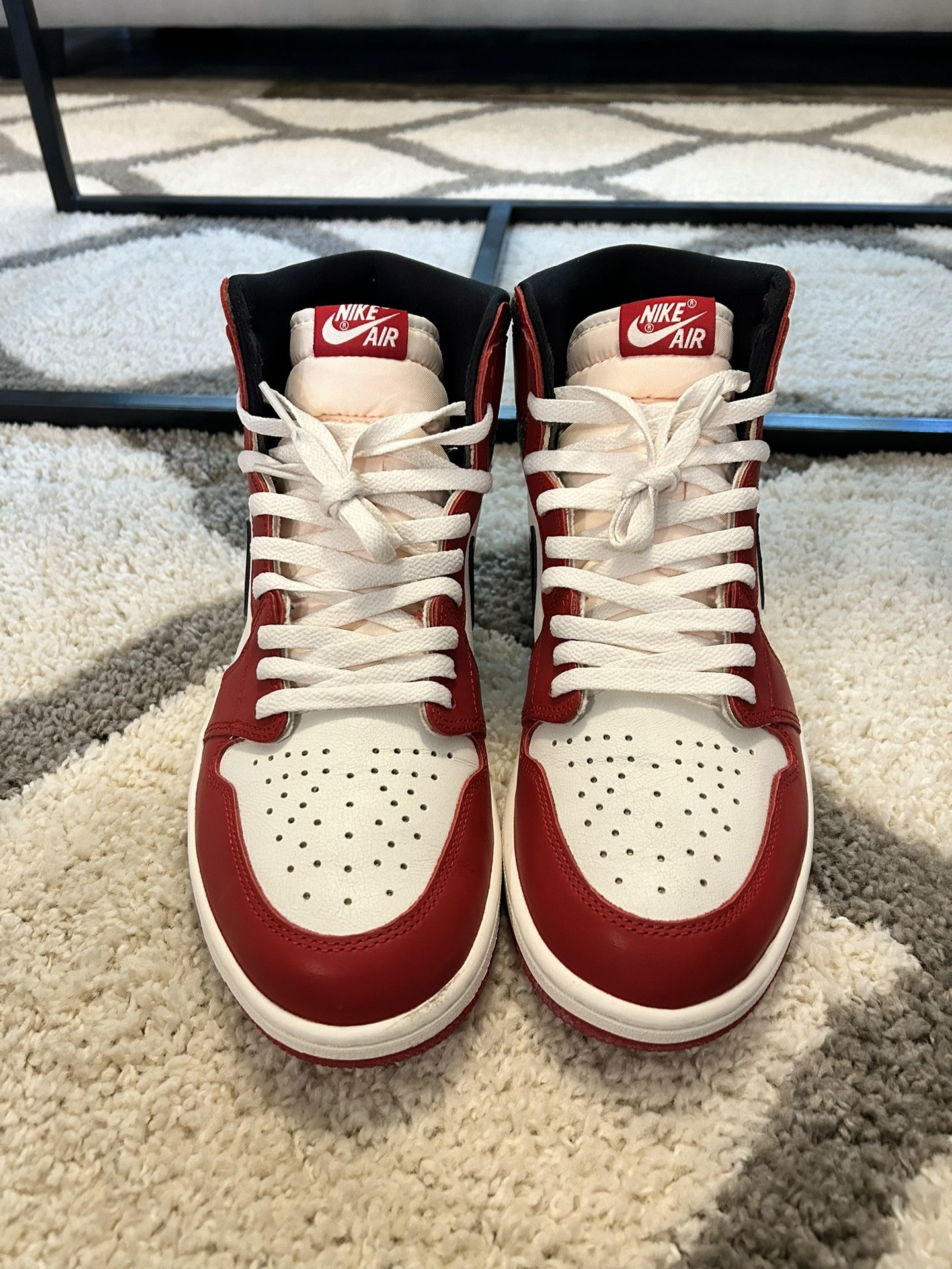 VNDS Jordan one lost and found size 12 one once OG all even the receipt black shoe strings are in the box . No heel drag or star loss
