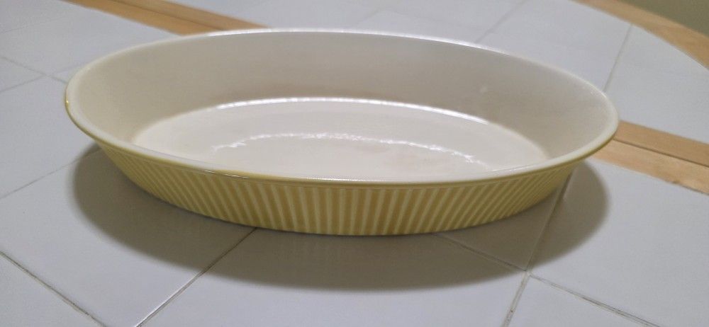 Vintage Villeroy & Boch Yellow ribbed oval porcelian baking/roaster/casserole dish, Made in Luxembourg 14x8x2 *cash only