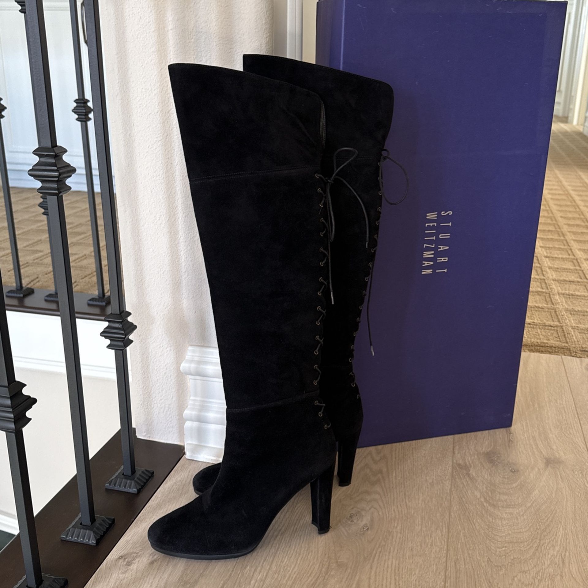 Black suede Stuart Weitzman boots “Lace me Up” New- see photos Porch pick up Mission Viejo Box included