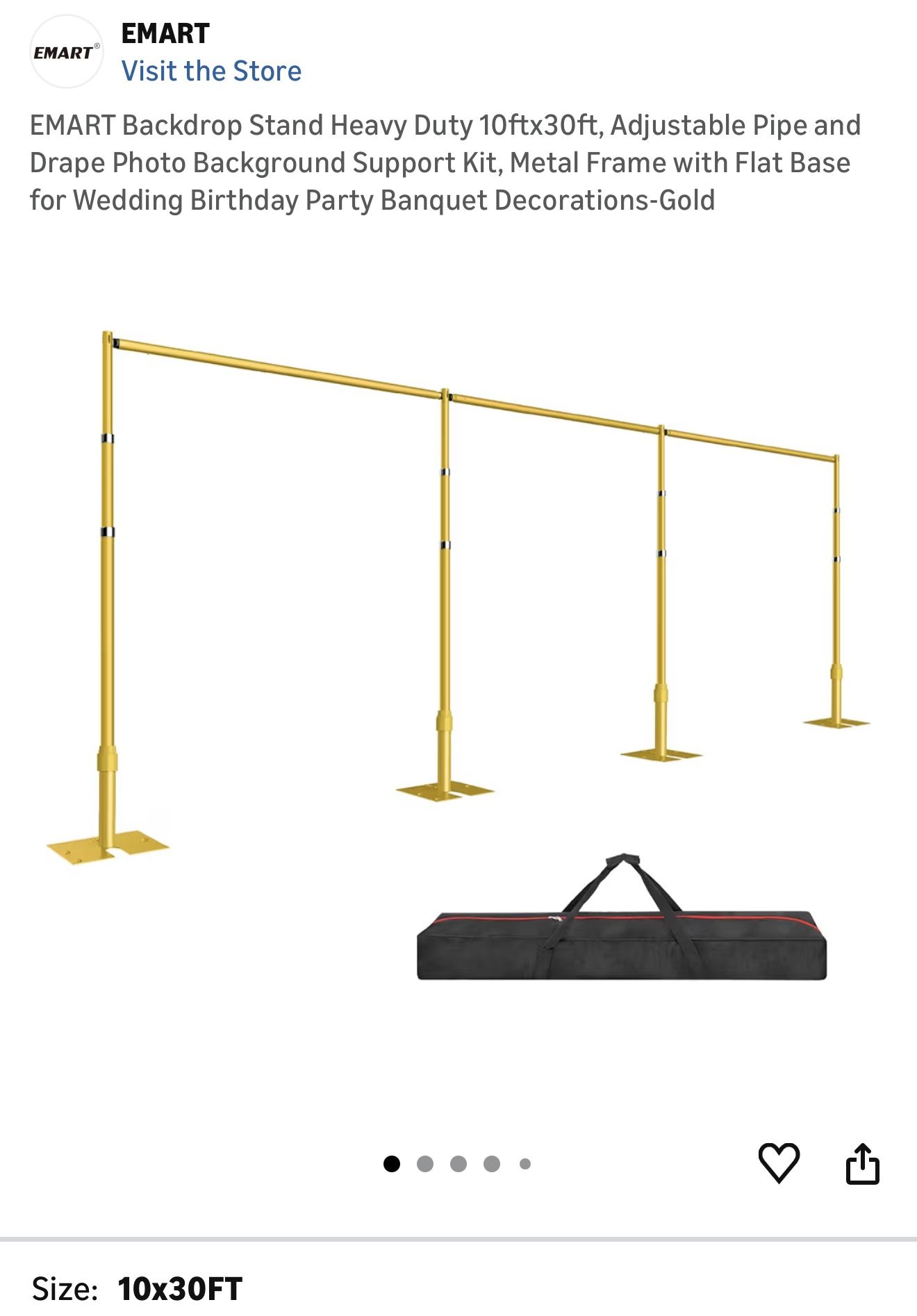 EMART Backdrop Stand Heavy Duty 10ftx30ft, Adjustable Pipe and Drape Photo Background Support Kit, Metal Frame with Flat Base for Wedding Birthday Party Banquet Decorations-Gold