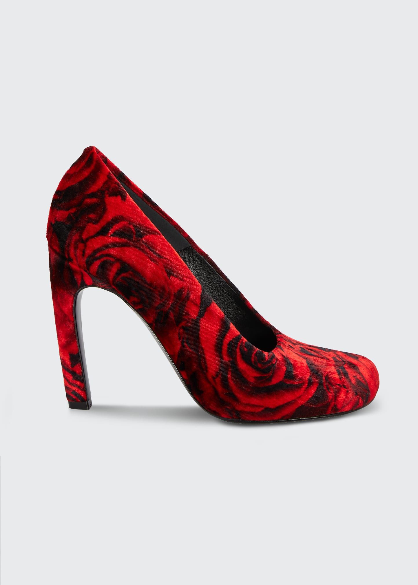 Dries Van Noten red and black velvet rose square-toe high-heel pumps Size 6.5
