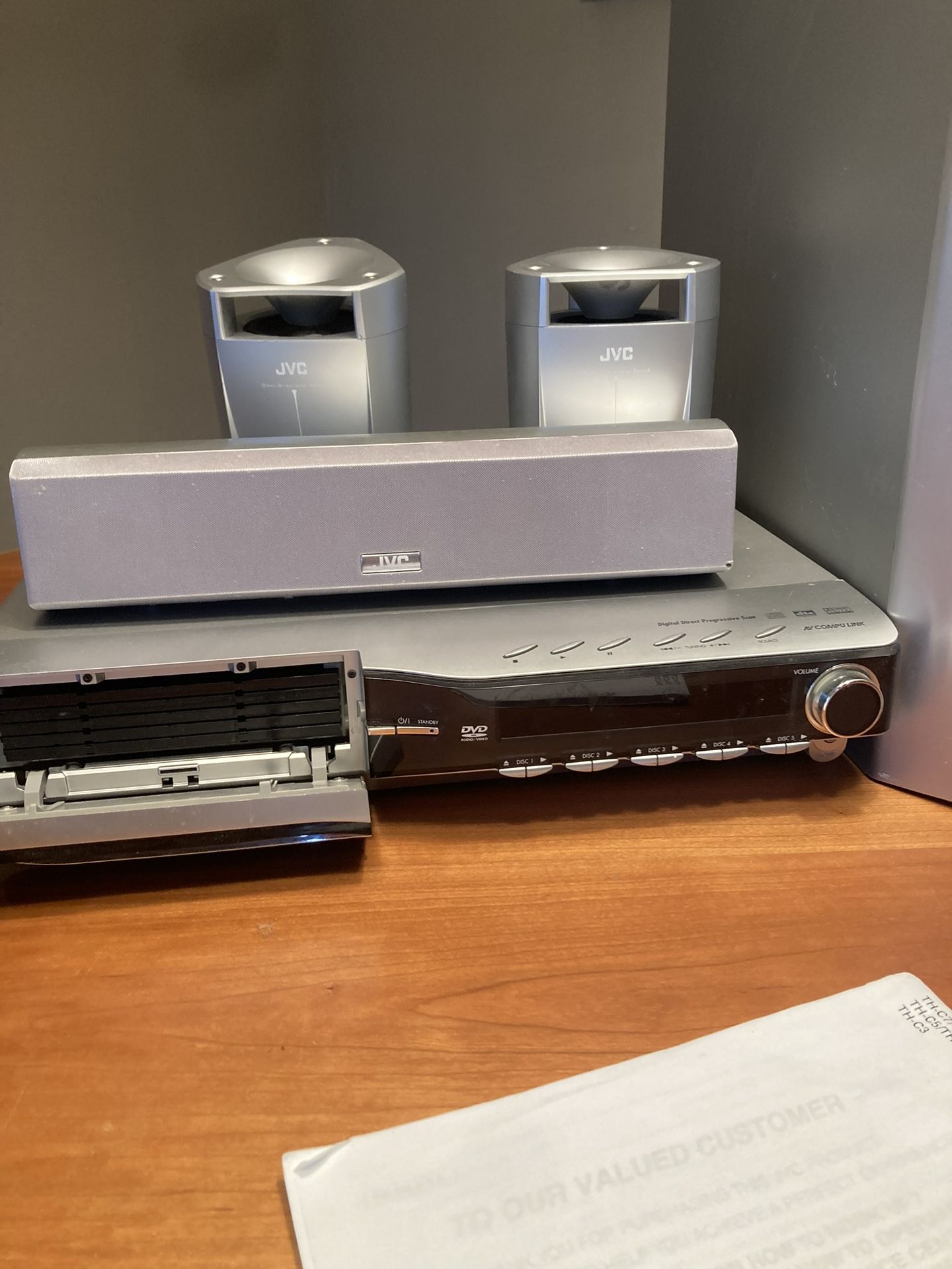 Home theater system. Player holds 5 dvds there are 5 speakers included and subwoofer.