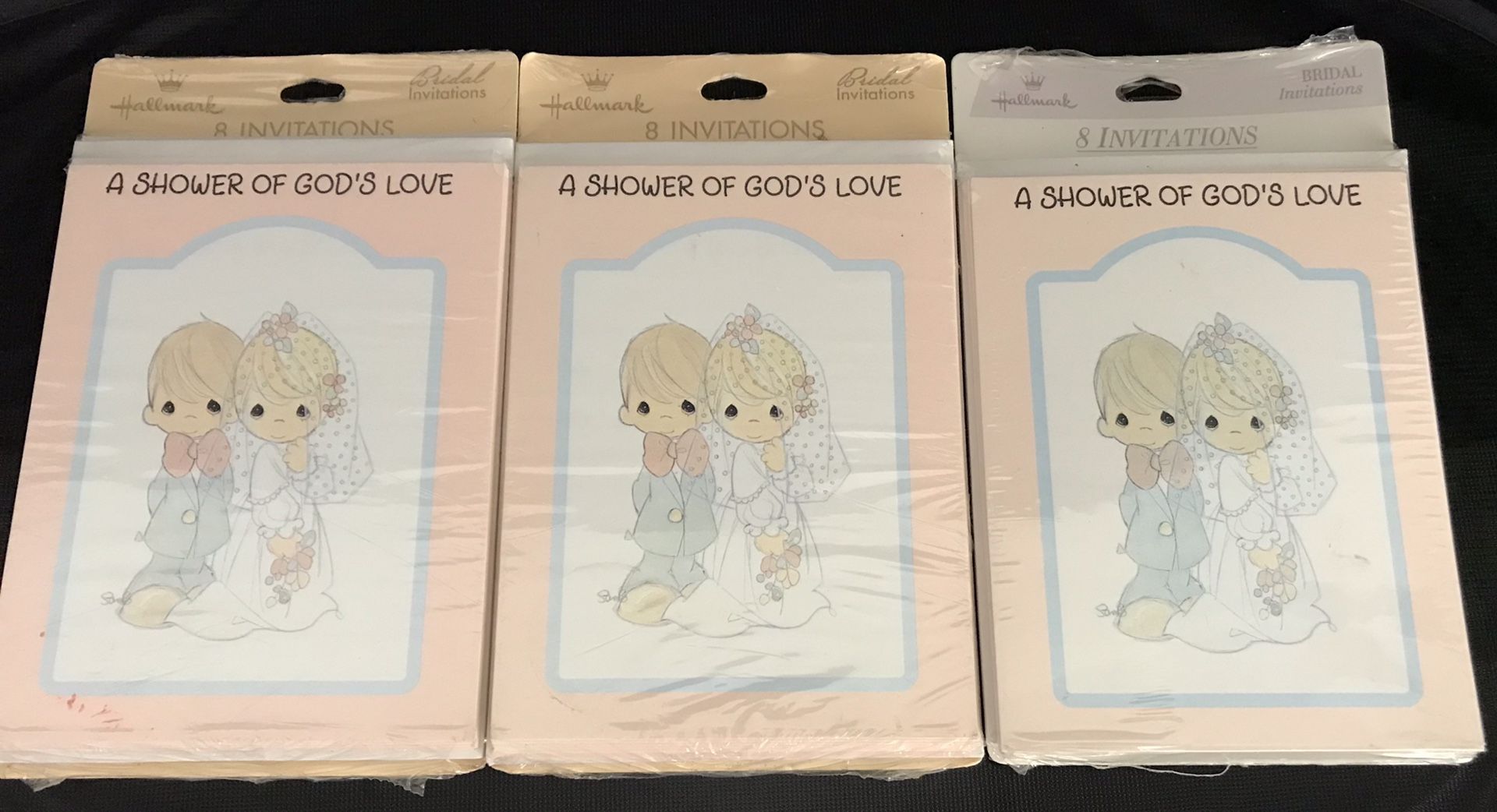 Precious Moments Hallmark Bridal Invitations “A Shower of God’s Love” are new in sealed packages. Three sets of 8 invitations = 24 total. These are pictures of the actual items that you will be receiving. Please see all photos as part of the description. Check out my other listings for many more Precious Moments to save on shipping costs. Please message me which ones to bundle and I will create a new Reserved listing just for you. All orders will be well packed and shipped the next business day. Happy shopping :) These can be purchased separately for $12 each.