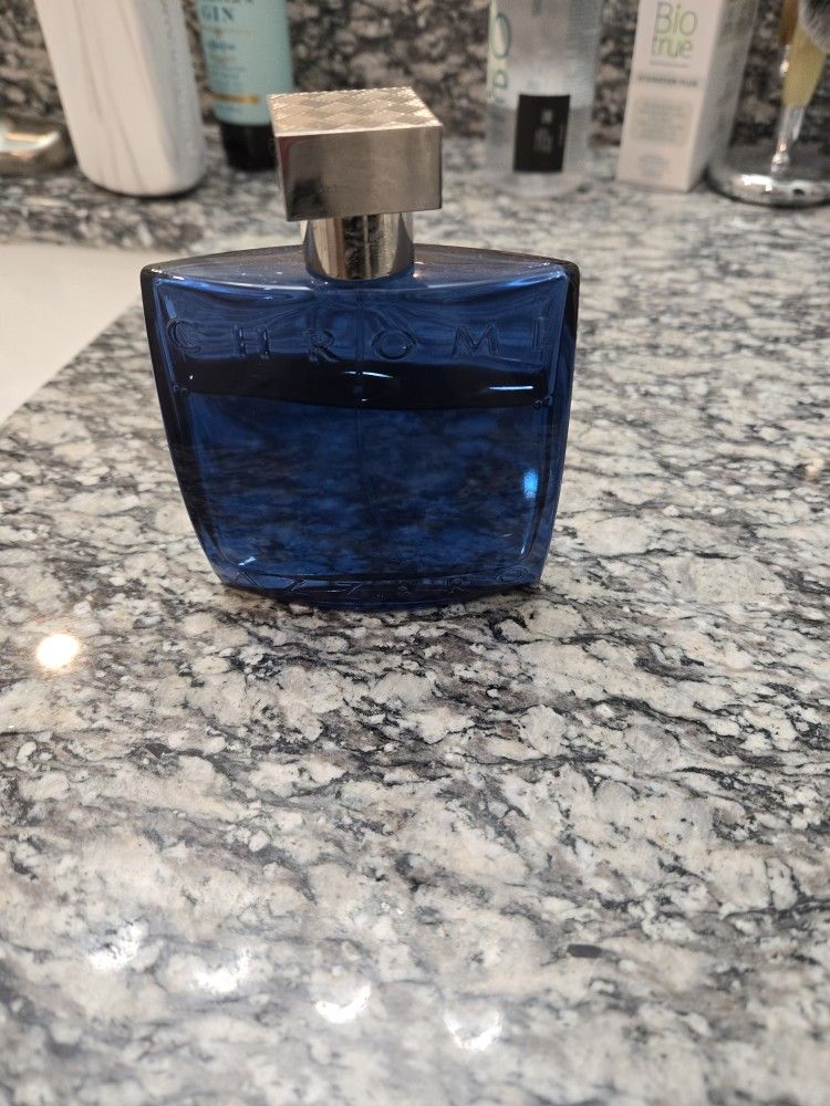 3/4 full. My wife loves it but not my kind of scent. Its the big 3.4oz bottle. modern, aromatic woody fragrance for men designed as an intense, long-lasting version of the classic scent