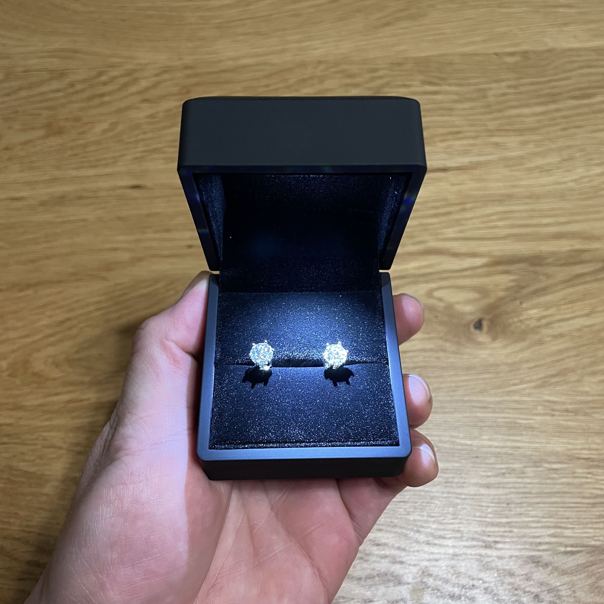 Elevate your jewelry collection with these brilliant moissanite stud earrings. Moissanite is famous for its incredible fire and brilliance, often outshining traditional diamonds while maintaining a hardness that makes them perfect for everyday wear! Realza tu colección de joyas con estos brillantes pendientes de moissanita. La moissanita es famosa por su increíble brillo, que a menudo eclipsa a los diamantes tradicionales, manteniendo una dureza que la hace perfecta para el día a día!