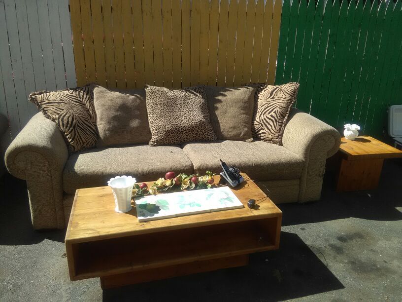 Material tela color crema con cojines estampado en pier de tiguere include las tres mesa de madera solida