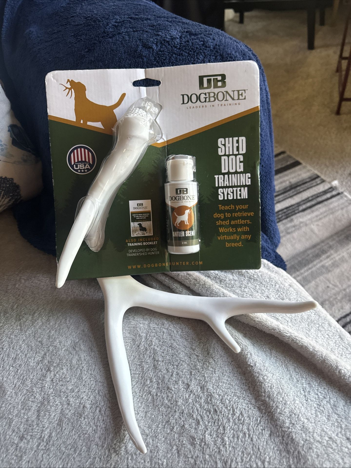 New, in original package. Great training system to get your dog to retrieve shed antlers.