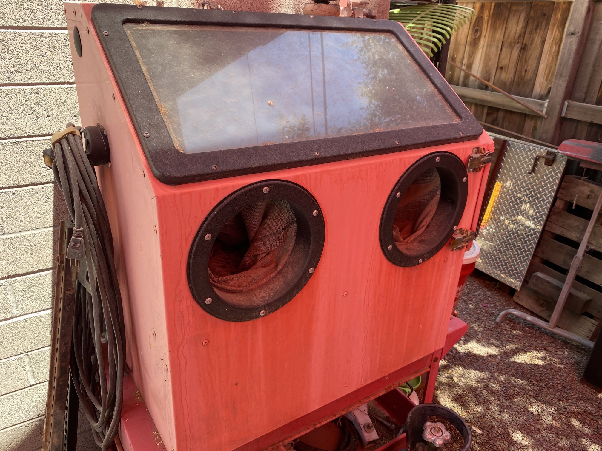 Used sand blast cabinet, will need new gloves from Harbor Freight. Includes blasting media, air line fittings and cart. Only $40, just don’t need it any longer. Come and get it! Aprox box size w/o cart is 26”x 18” x 28” .