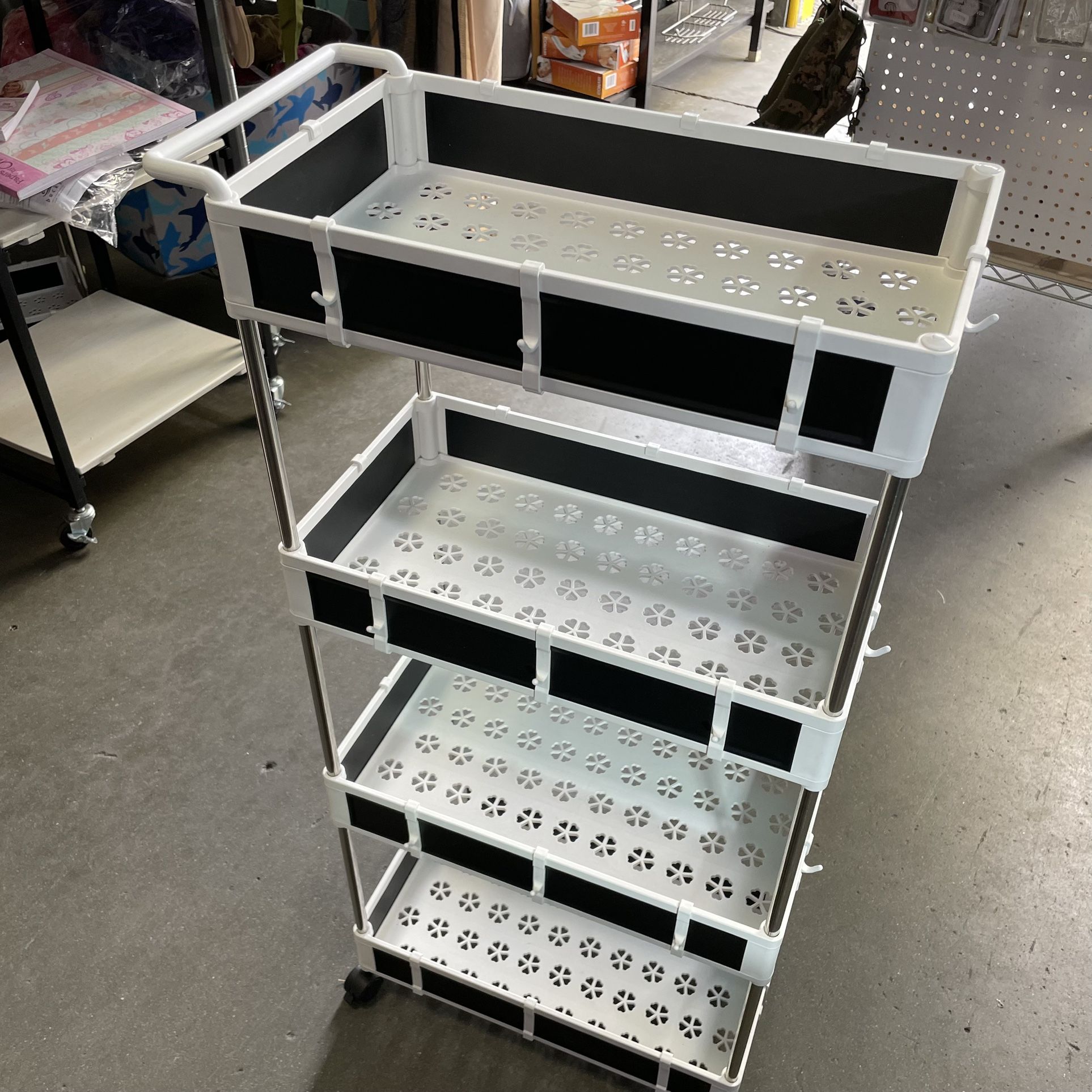 Brand new in the box 4 Tier Rolling Storage cart Each shelves can hold up to 22lb 36”H x 16”L x 9”D