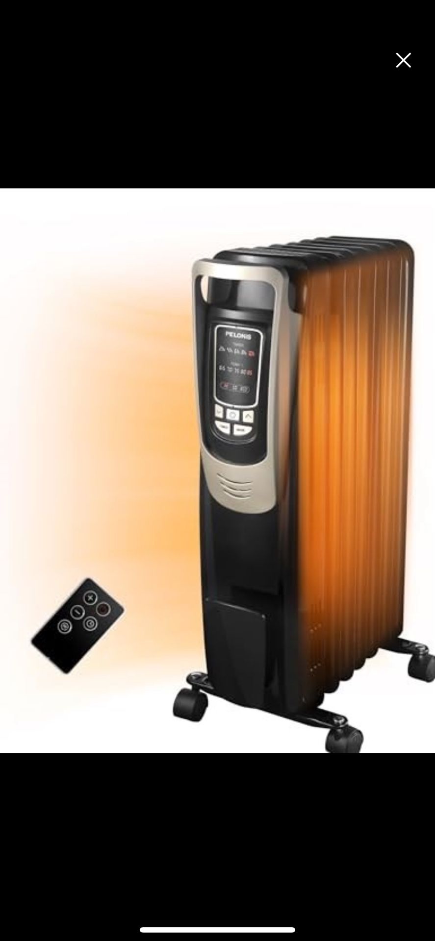 PELONIS Oil Filled Radiator Heater Luxurious Champagne Portable Space Heater with Programmable Thermostat, 10H Timer, Remote Control, Tip Over&Overheating Functions, Quiet Heater for Home Office
