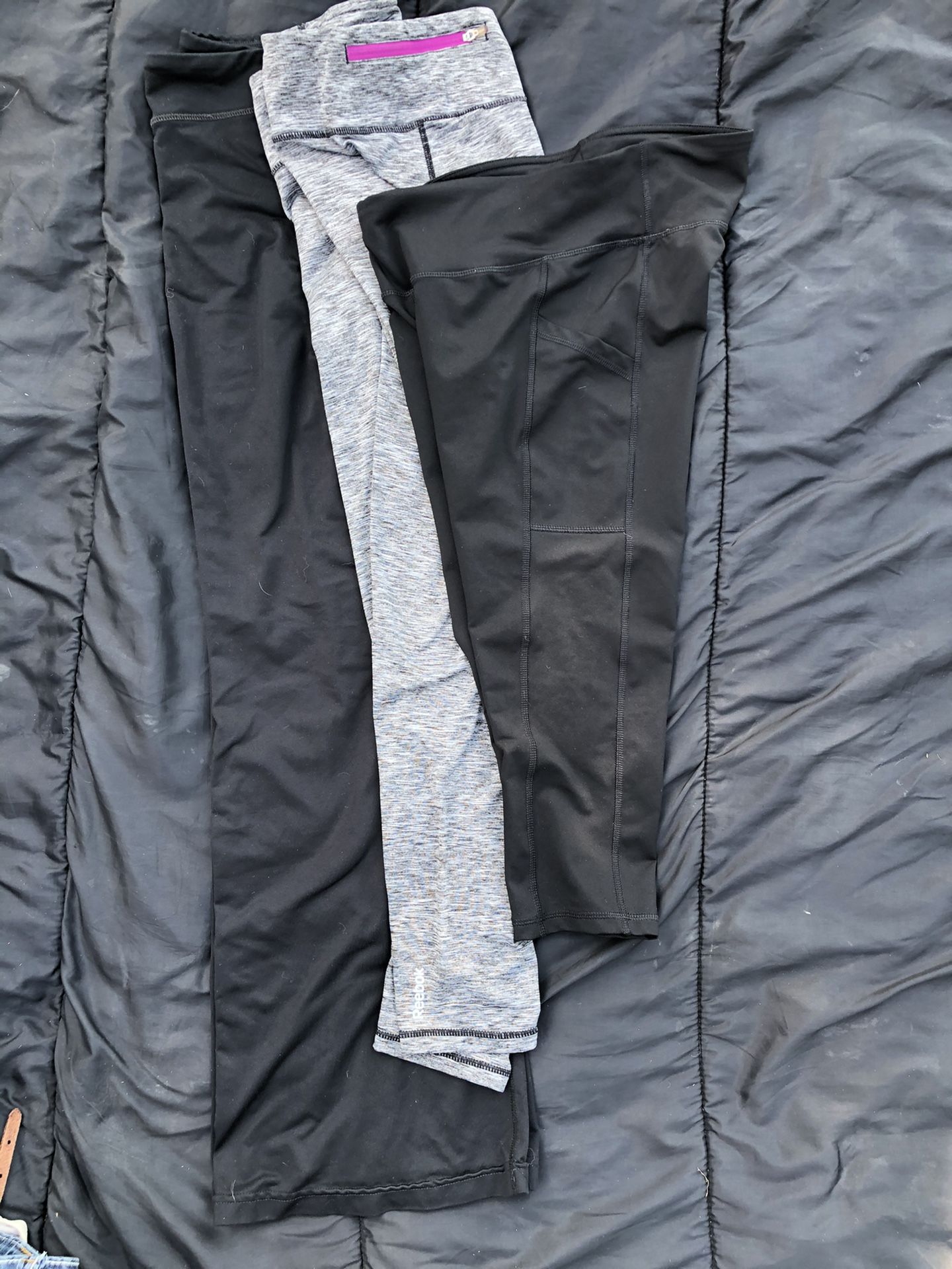 3 pair of woman’s size medium yoga pants. 2 black, 1 grey Reebok