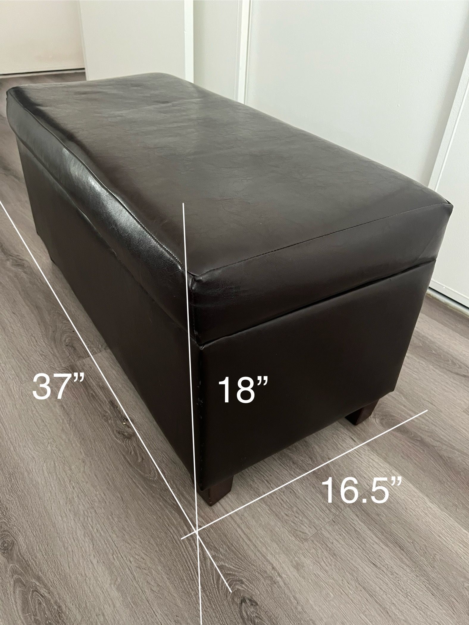 Dark Brown Leather Ottoman with storage.
