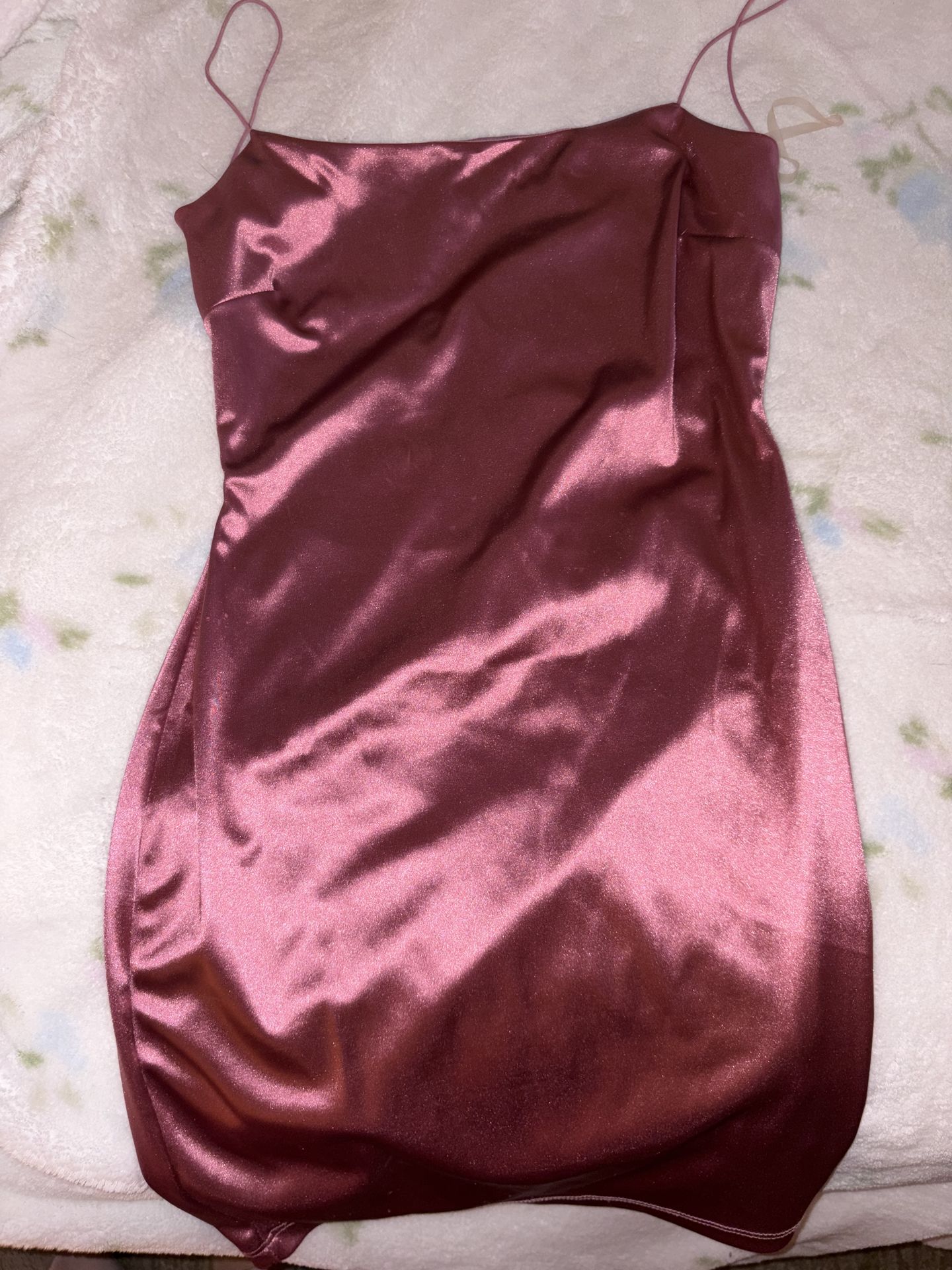 Beautiful rose gold/mauve satin dress with a glossy finish. Size M from Windsor
