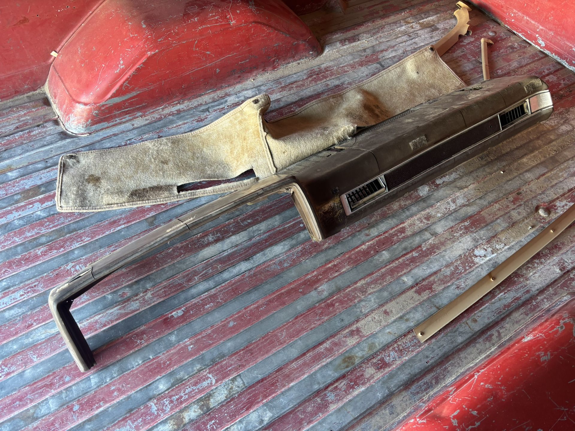 Used and shows some damage. Would make a great core to recover with new material or to adhere a cap/cover to. I bought one like this and added a cap from LMC truck so I didn’t have to leave my dash factory out for a while. This is from a 1984 truck. Asking $120 OBO. Cash and pickup only please.