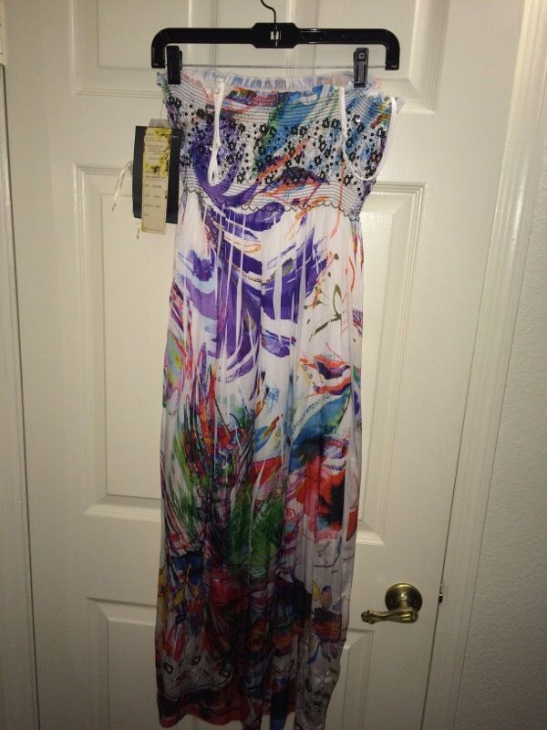 NWT. Beautiful multicolored tube dress with detachable straps three-quarter length. One-size-fits-all