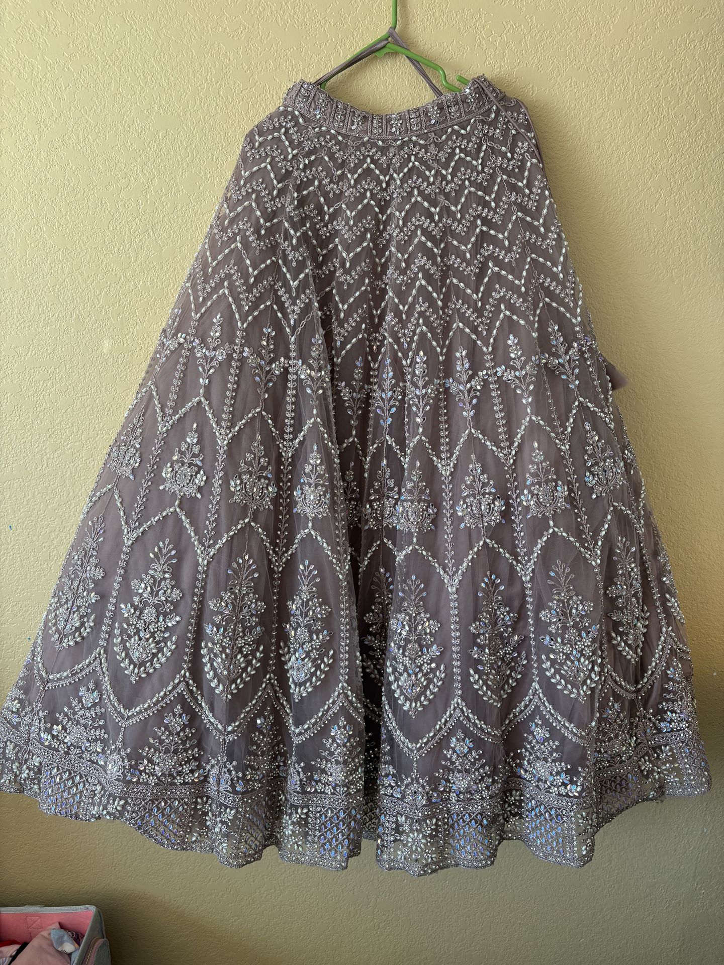 Indian wedding dress beautiful brand new light colors little lighting difference in photos. Very beautiful. Offer me best price. It’s Indian dress good size to normal size.
