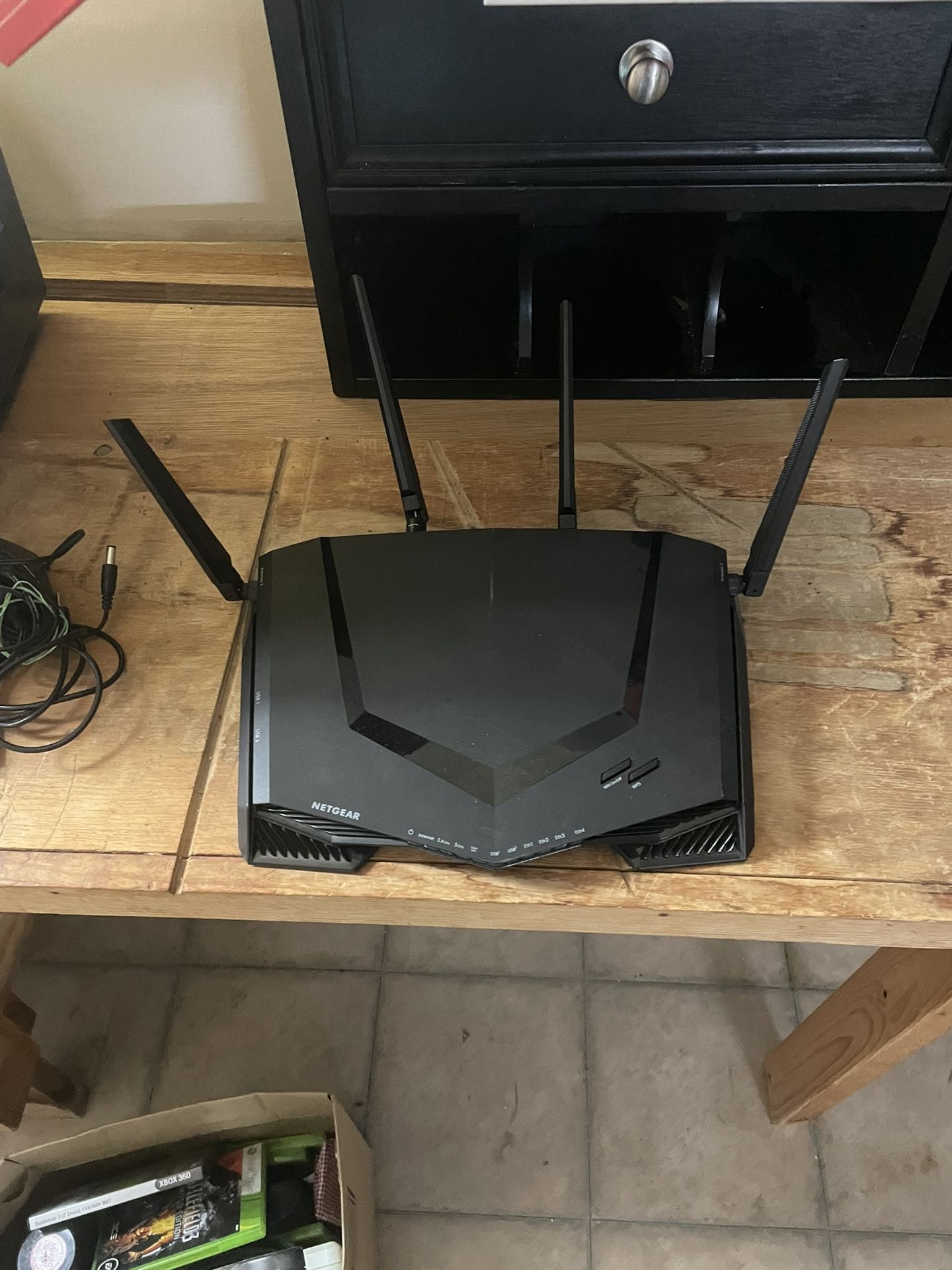 Used nighthawk router one antenna in back is loose but still works fine. Just no longer need. OBO