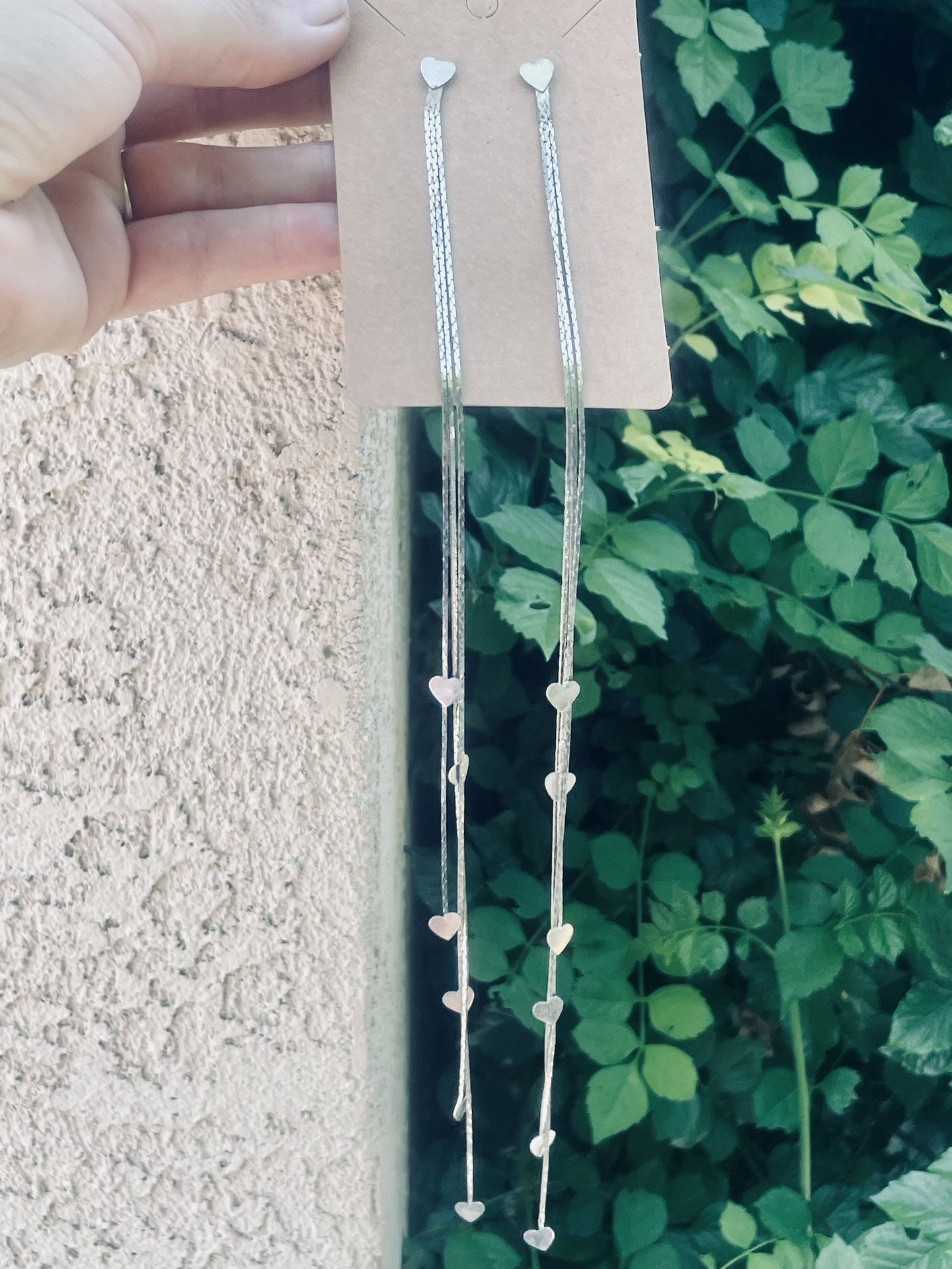 Very Long Heart Detail Silver Tone Multistrand Dangle Womens Earrings