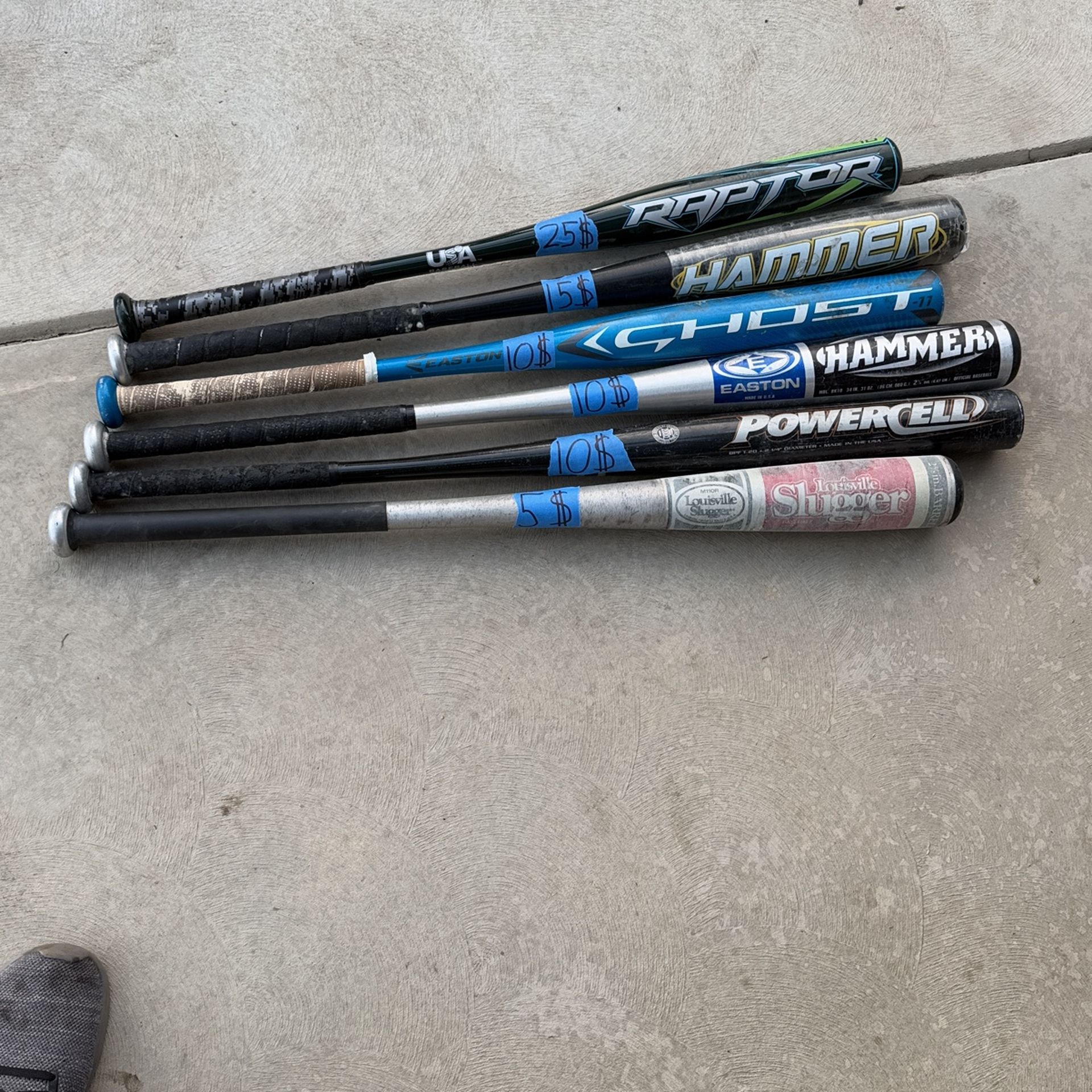 Various sizes baseball/softball bats Prices vary see picture for prices Available weekday afternoon 3pm-5pm Weekends vary GHOST Bat is SOLD!