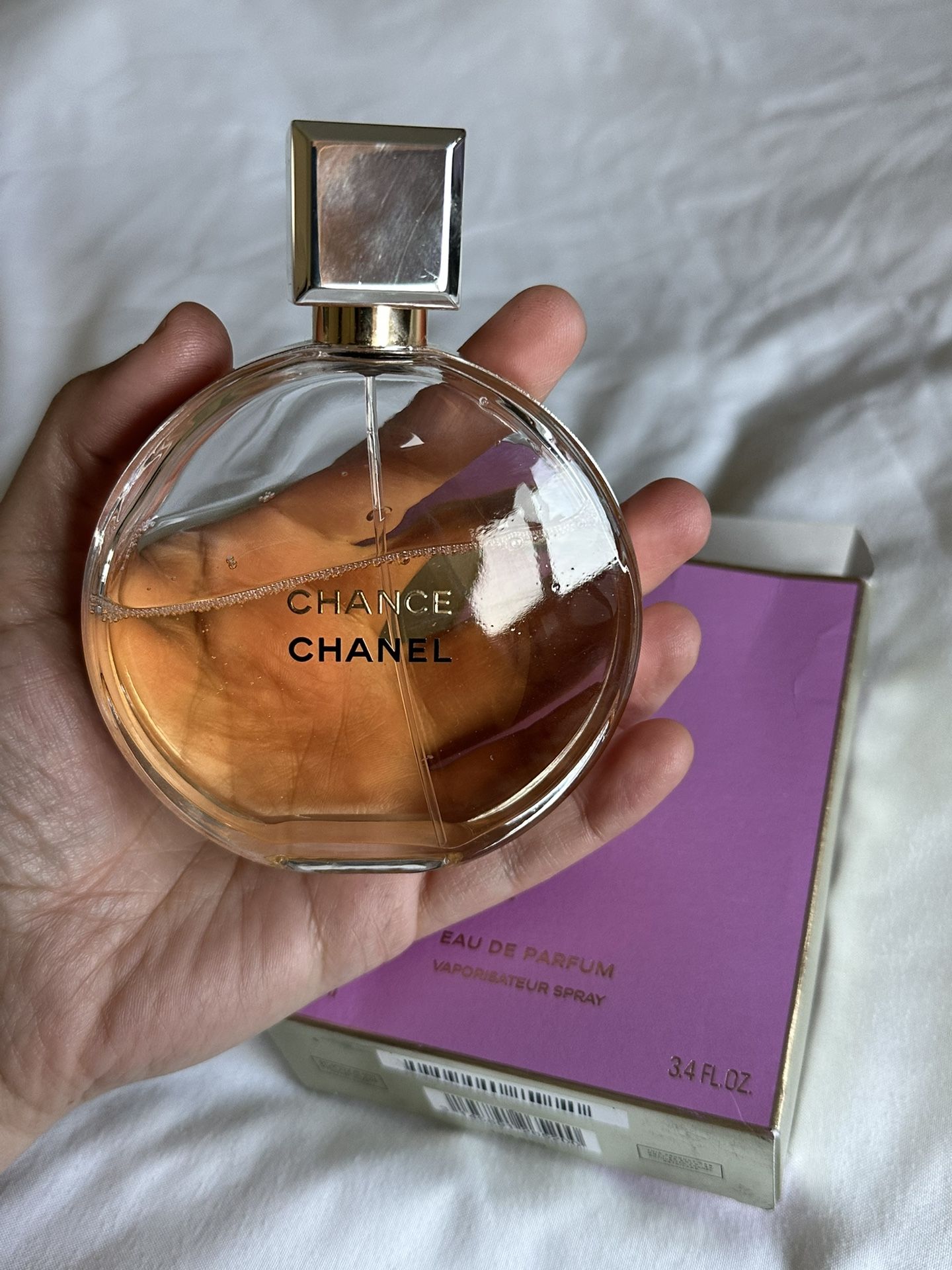 CHANEL CHANCE Eau de Parfum 3.4oz (100 ml) 100% authentic Lightly used, 85% is left in the bottle as shown in the pictures. Comes with its box I’m Only selling it bc I no longer can use perfumes. Paid $190 when I bought it from Sephora Fragrance Family: Floral Scent Type: Warm Florals Key Notes: Jasmine, Pink Pepper, Vanilla Fragrance Description: Unpredictable, in perpetual movement, the unexpected floral fragrance sweeps you into its whirlwind of happiness and fantasy.