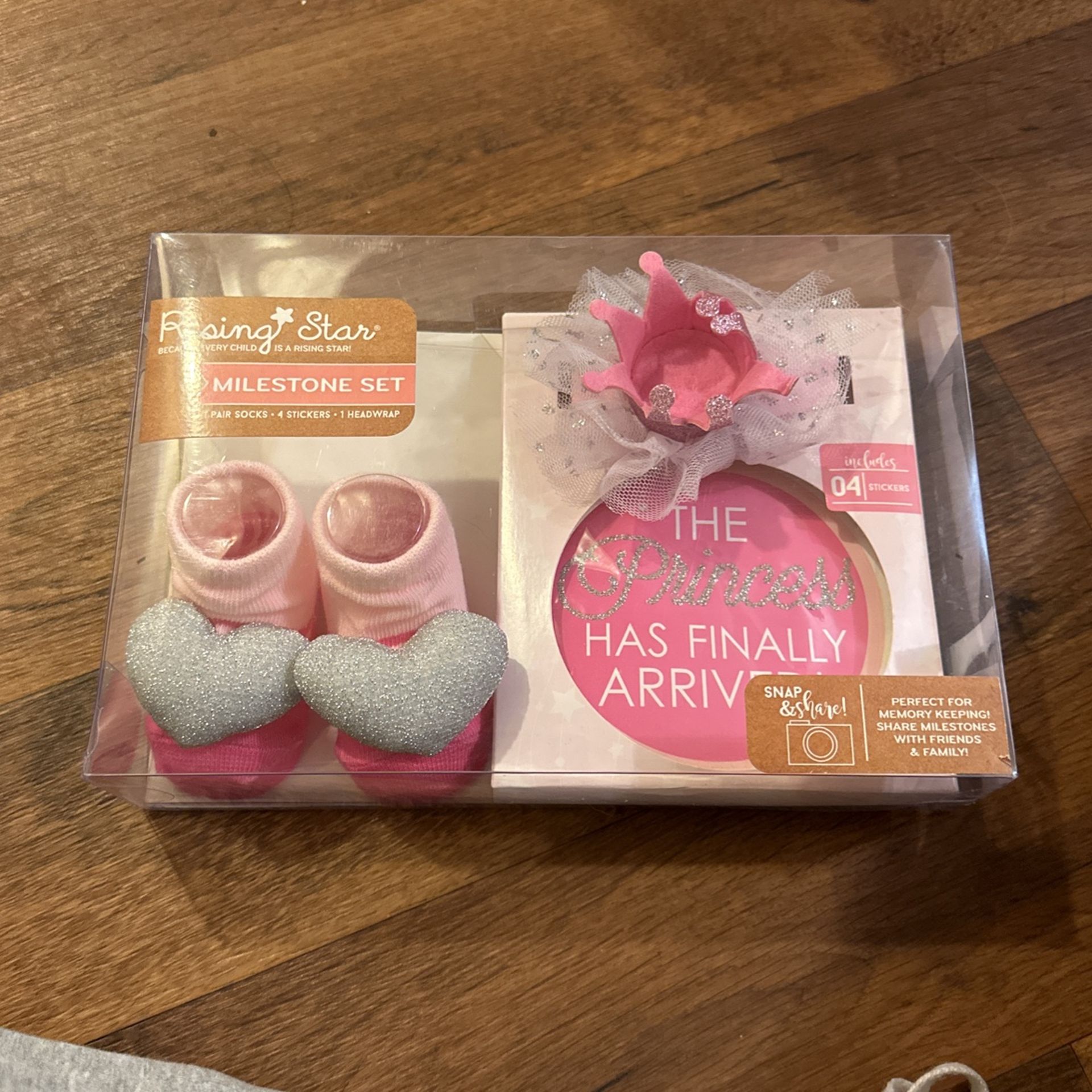 About this item: Set includes one pair of socks, one headband, and four belly stickers Little princess design Designed for infants 0-12 months old Designed by Rising Star 100 percent Cotton Poly Spandex Blend (Outfit), 100 percent Paper (Stickers)