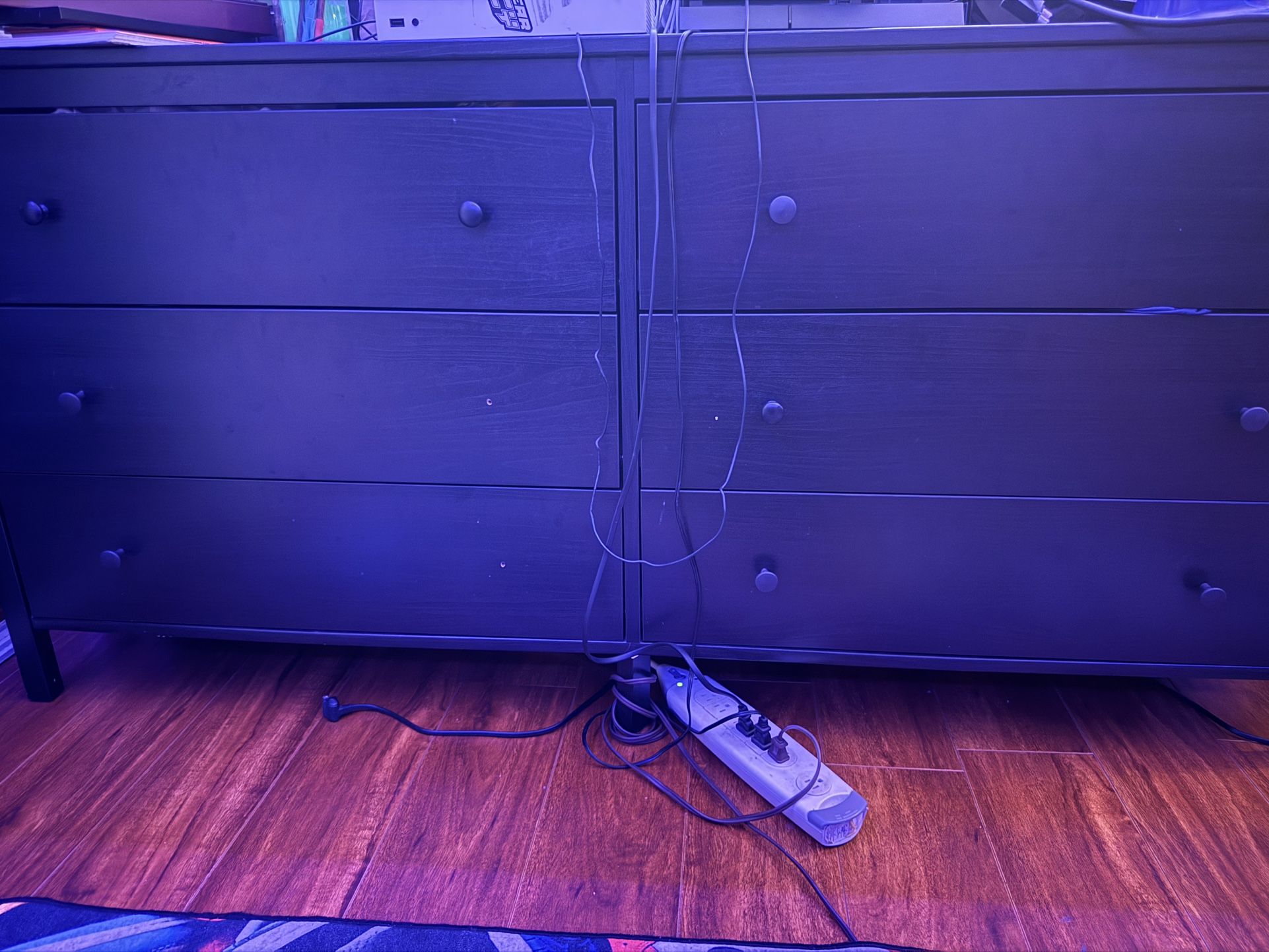 Black wood six drawer dresser from IKEA. A few knobs are missing but it’s in good condition.