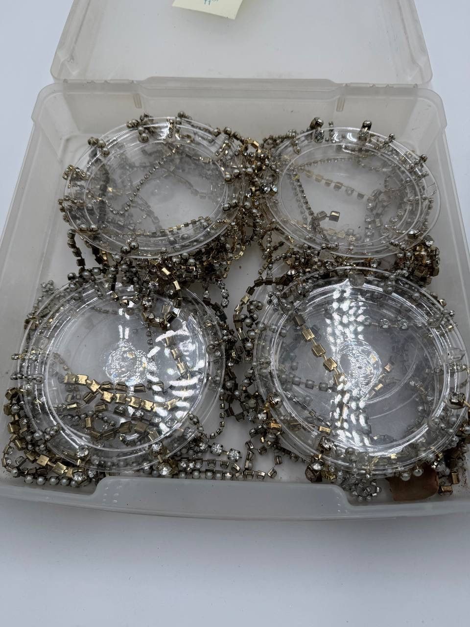 Vintage Rhinestone Chain Trim Lot – 4 Spools Assorted Clear & Pearl Embellishment Strands – Craft / Costume / Jewelry Making