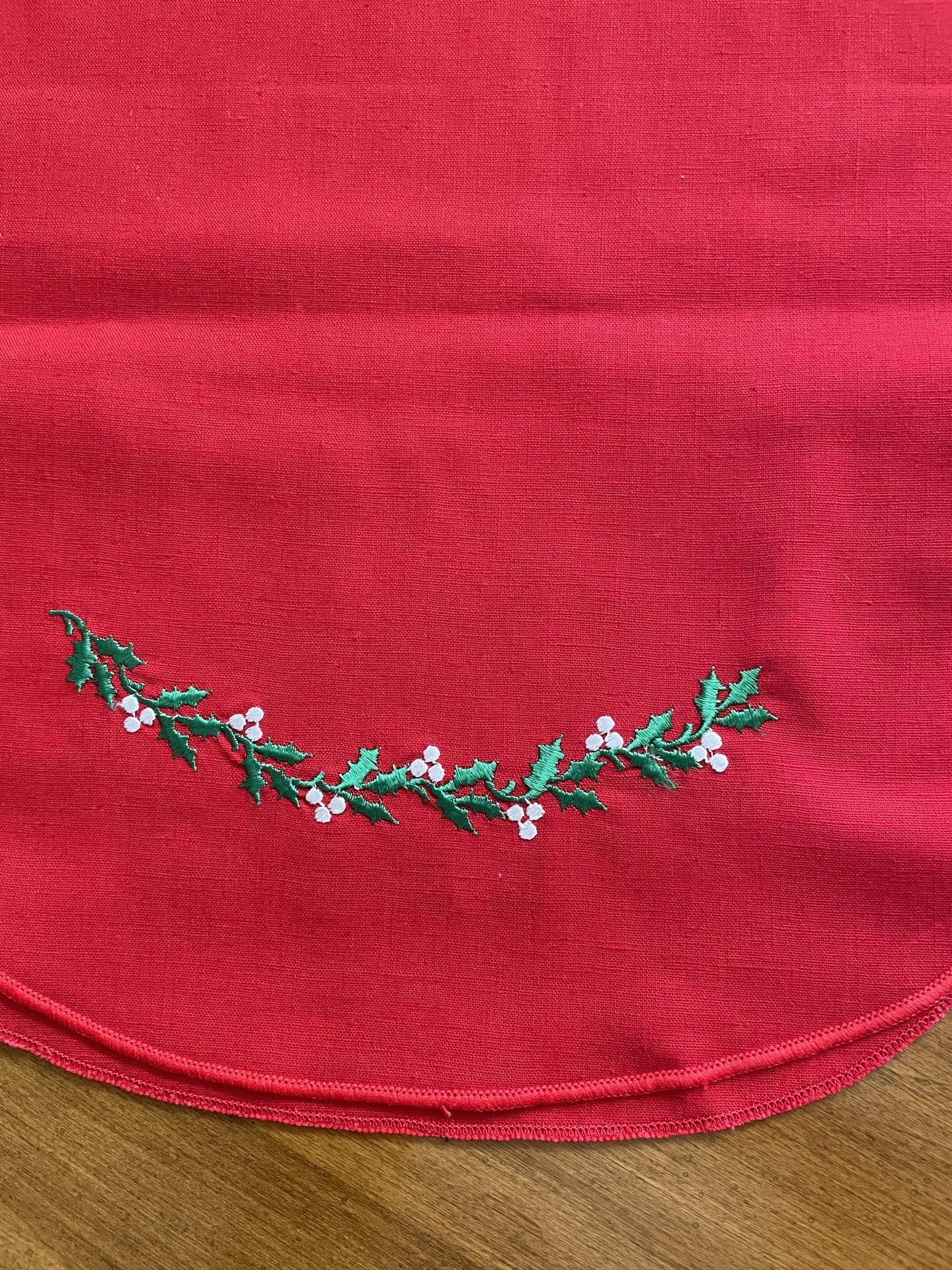 2 red holiday and 1 lace table runners in like new condition. Red runners are 70” each. Lace runner is 50”. $10 each or all 3 for $25.