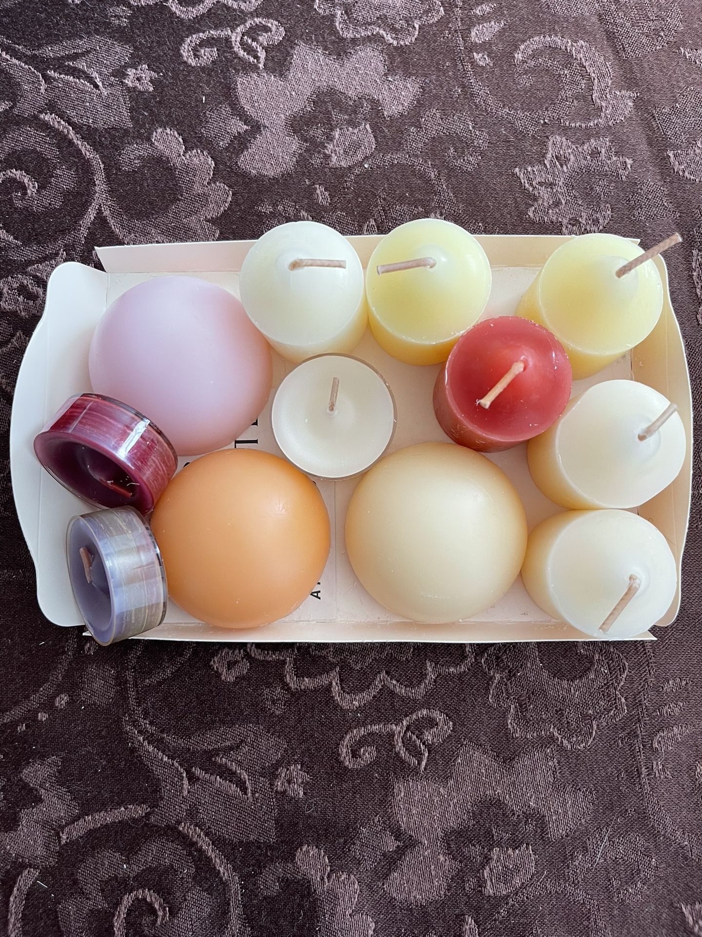 Random PartyLite sampler with wax melts, tea light candles, and votives. Never lit or used in any way.