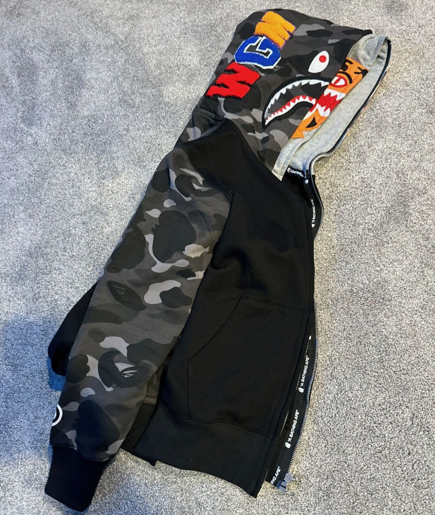 A Bathing Ape Hoodie Bape Black Camo Zip Up Double Hood Jacket XS S M L XL XXL