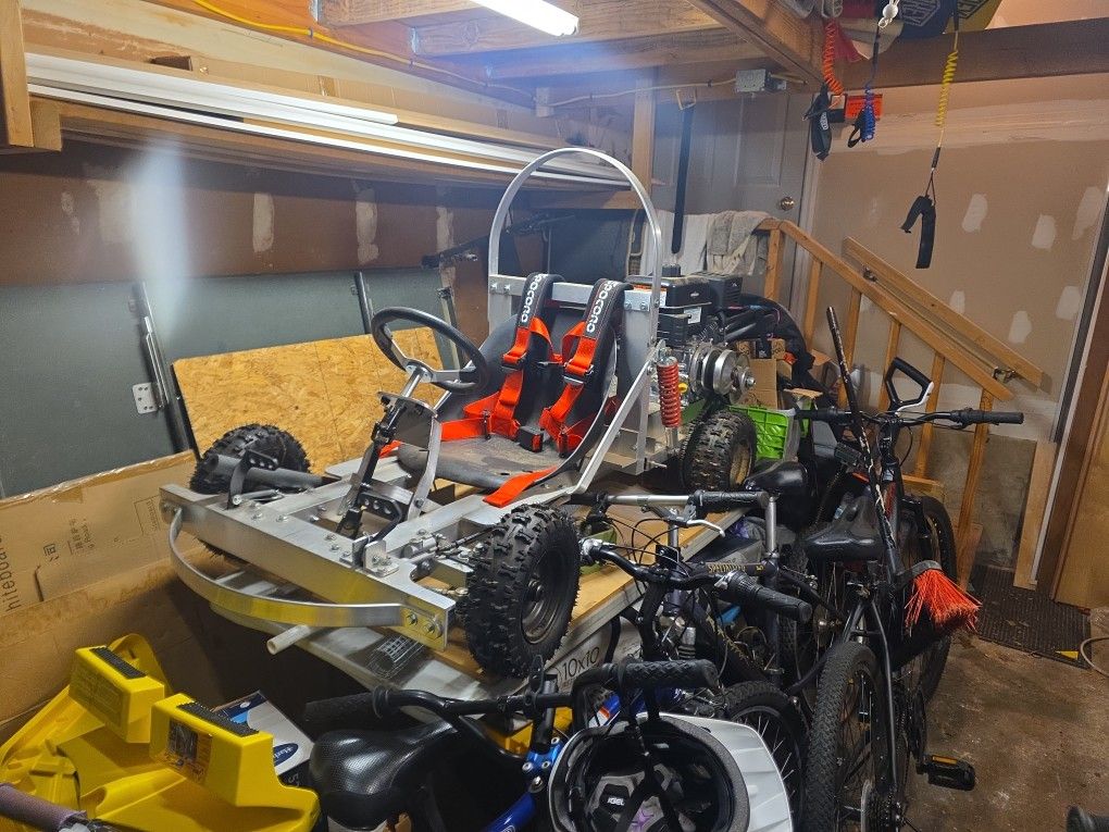 Aluminum home made go-cart. I started it during Covid to stay busy. I never finished it. It has a brand new Briggs and Stratton engine (Never started) i hope someone could finish it and enjoy.
