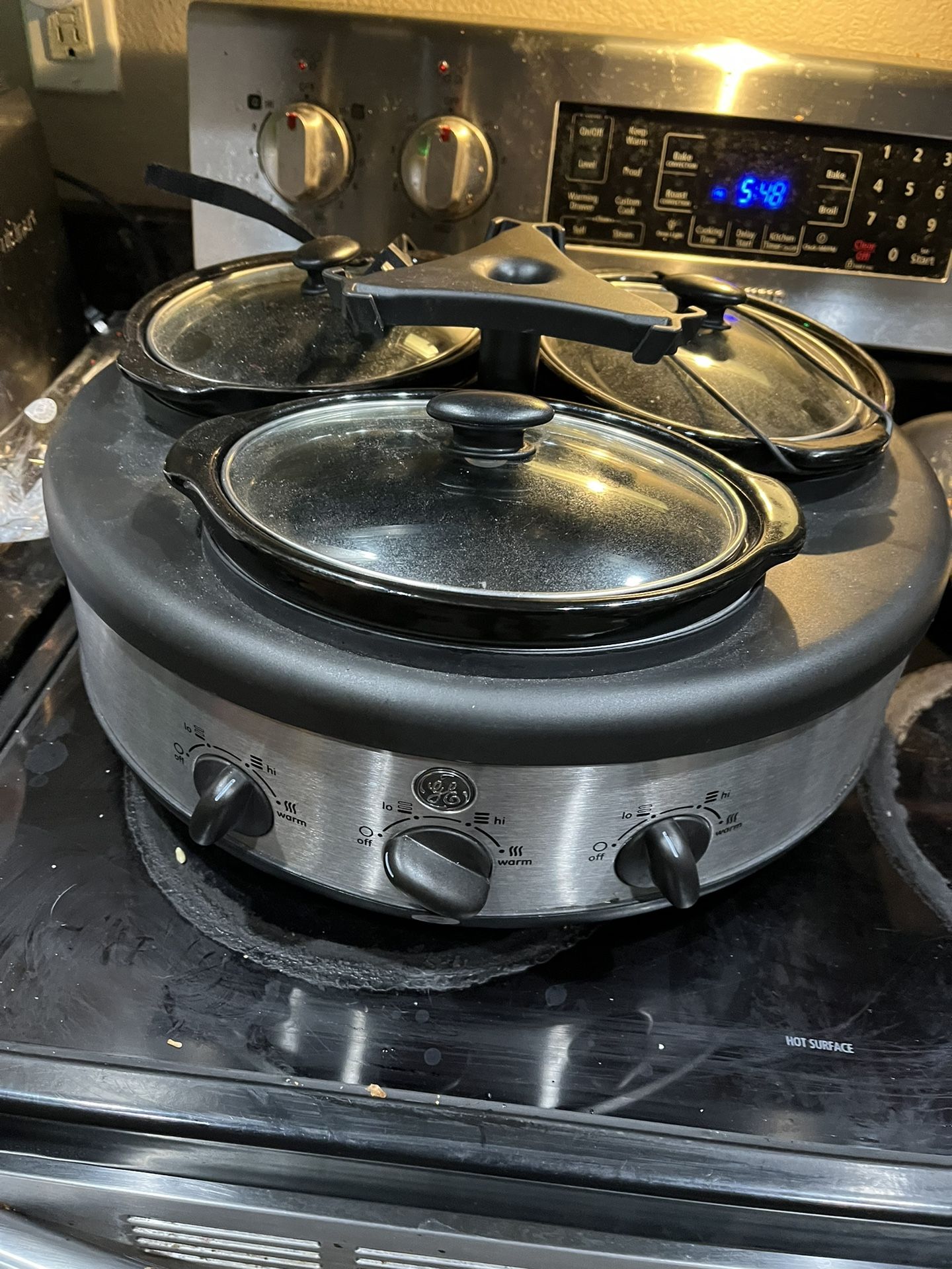GE Triple Round Oval 1.5 Quart Stainless Steel Cooker Buffet retails new for $99+ tax, like new used a couple times only.